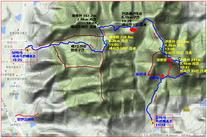 산행일자 2017.4.22.토 11:12~16:25(산행시간 5:13, 휴식시간 00:30, 이동거리 11.5km) 날씨: 다소 흐림