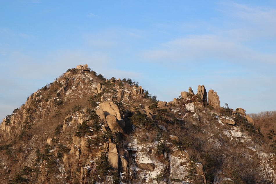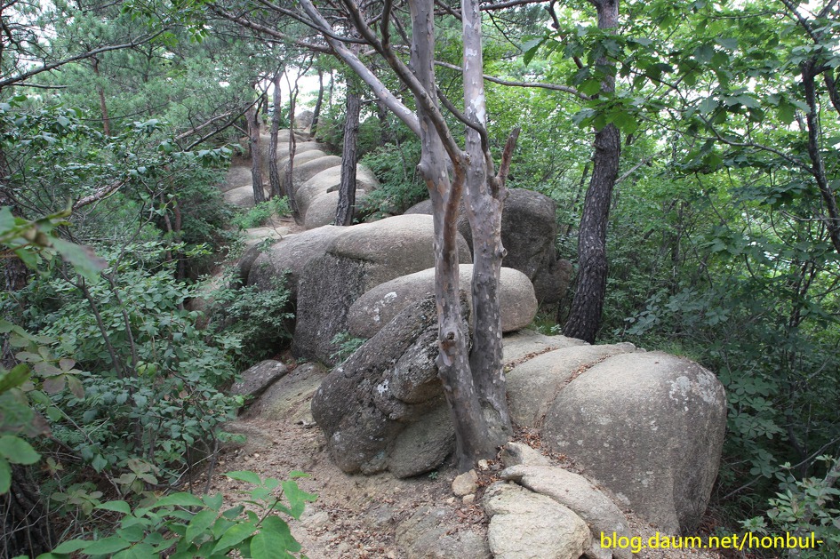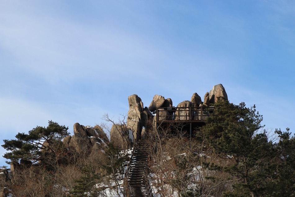 아직 개방 초기라 등산로는 한 사람이 겨우 지나갈 정도로 비좁아 내려오는 사람과 만나면
