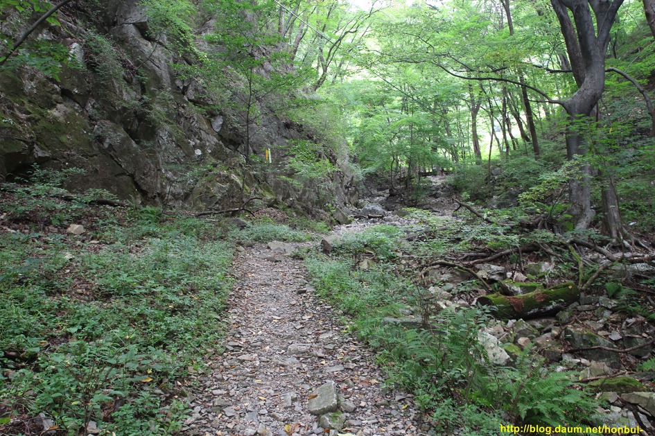 한동안 단풍나무와 참나무가 많은 계곡을 지난다.