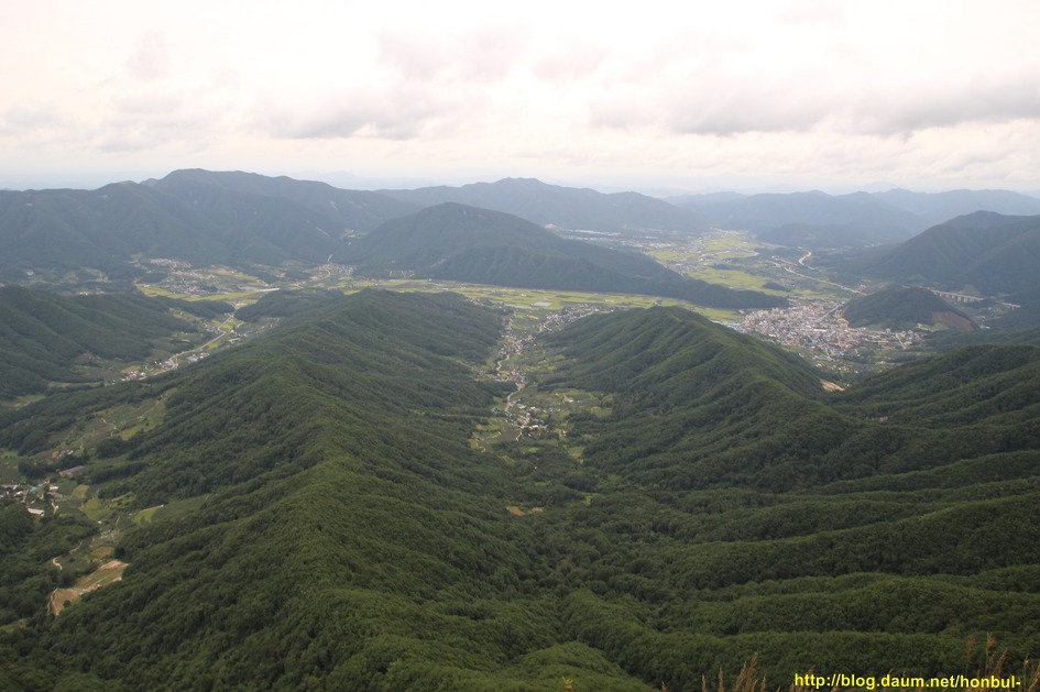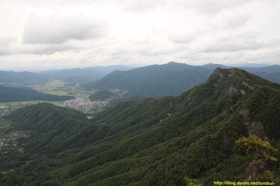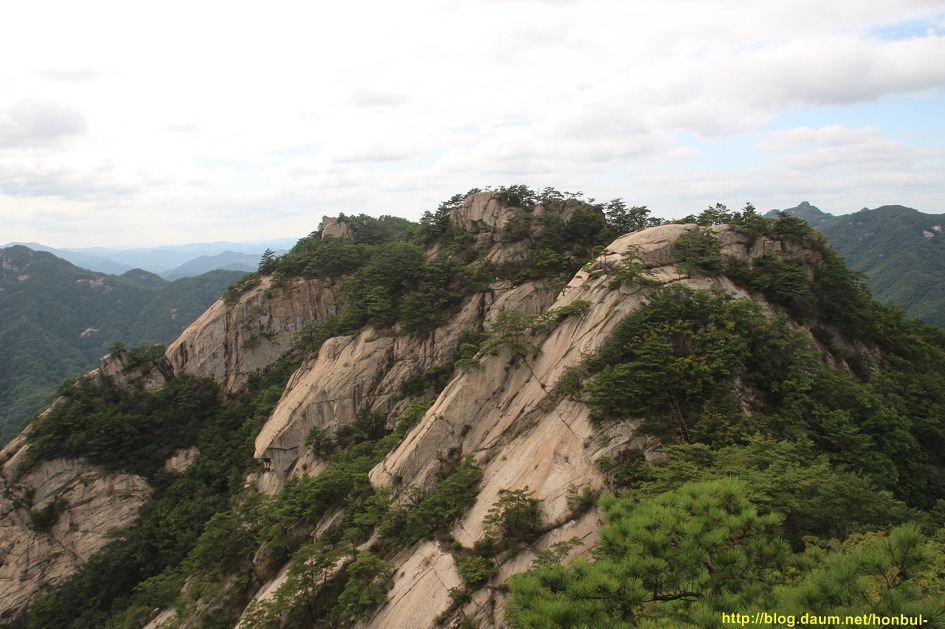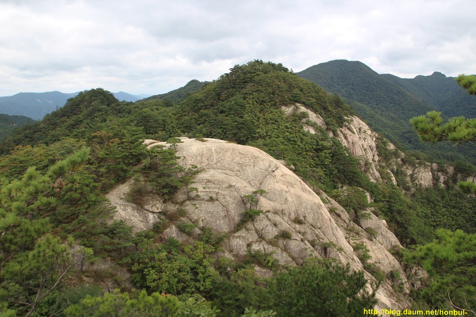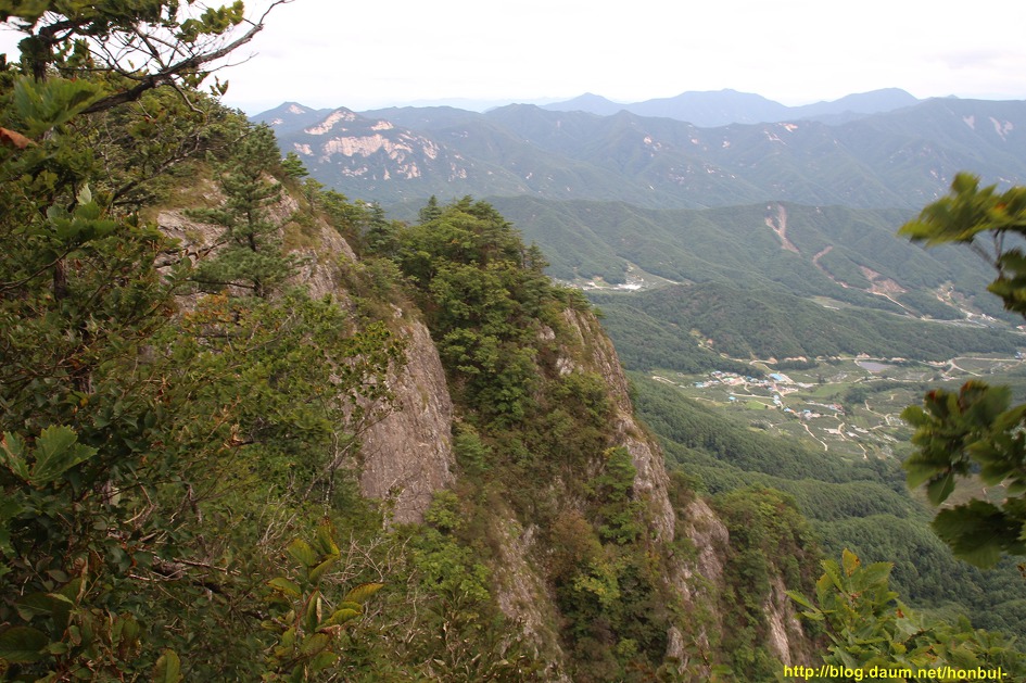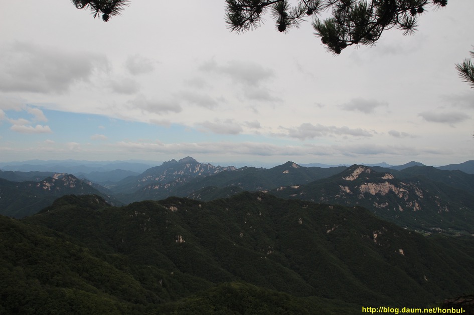 오른쪽 남봉 우측에 보이지 않는 계곡과 능선을 타고 올랐다.
