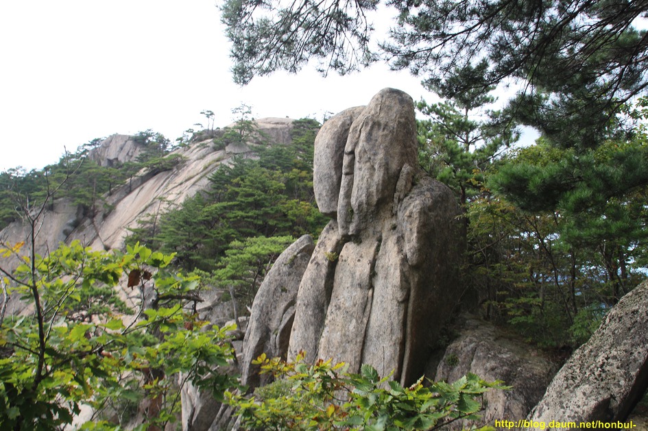 4봉과 5봉 사이 능선으로 내려가는 길의 잘 생긴 바위, 시간이 충분하다면 내려가 보겠지만 오늘은 사양한다,