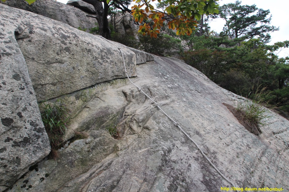 5봉 내려가는 수직 벽도 제법 높고 위험해 보이나 이럴 때 아니면 언제 이런 바위를 타겠냐?