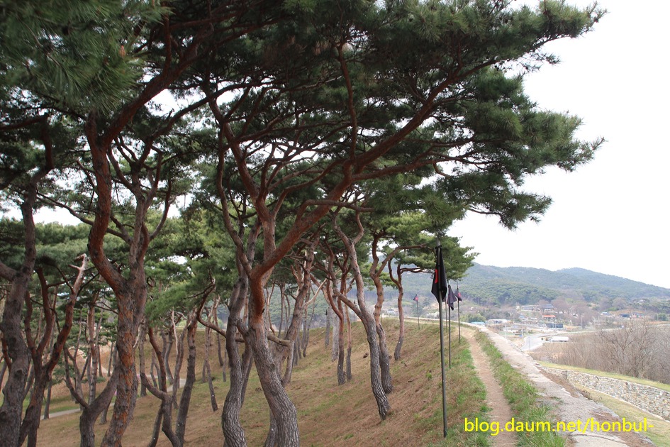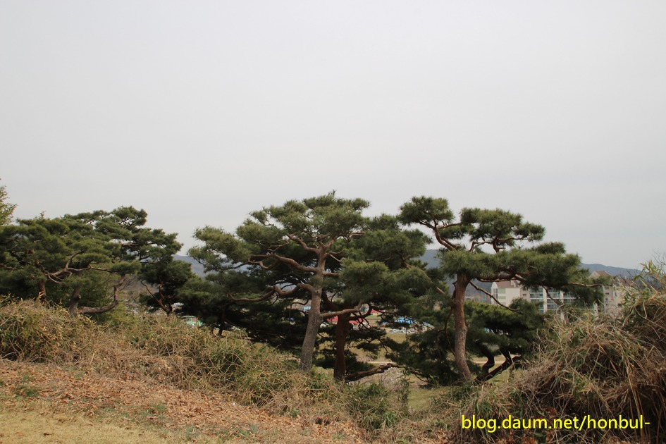 성안에 이렇게 반송같은 소나무가 눈에 띄는 포인트가 된다.