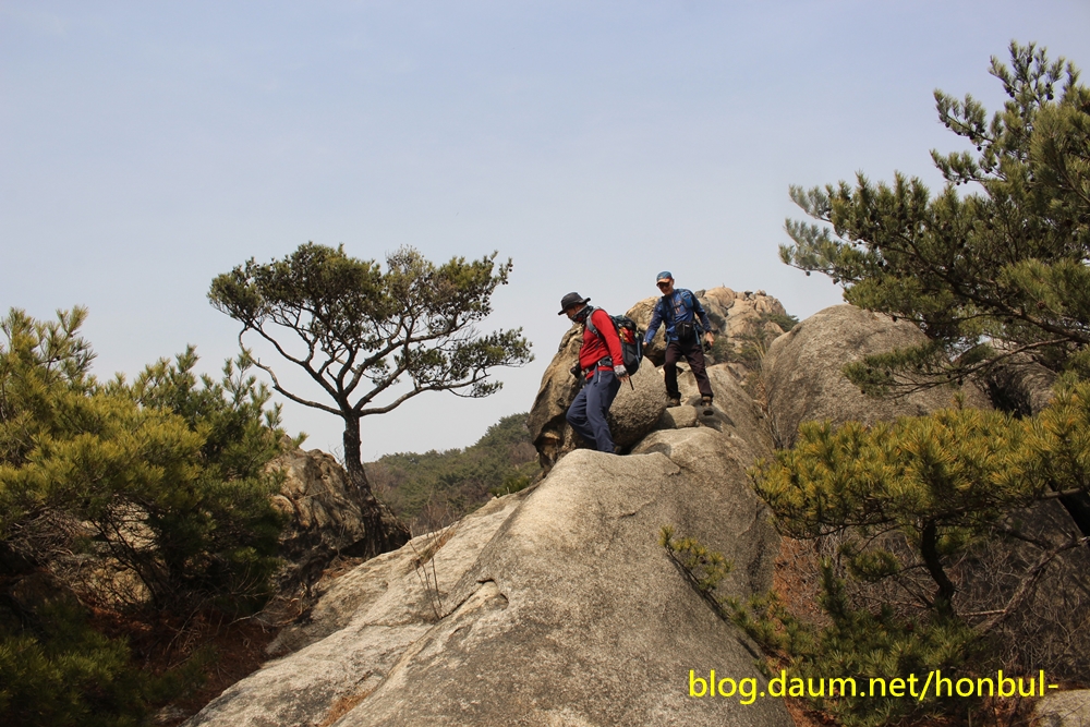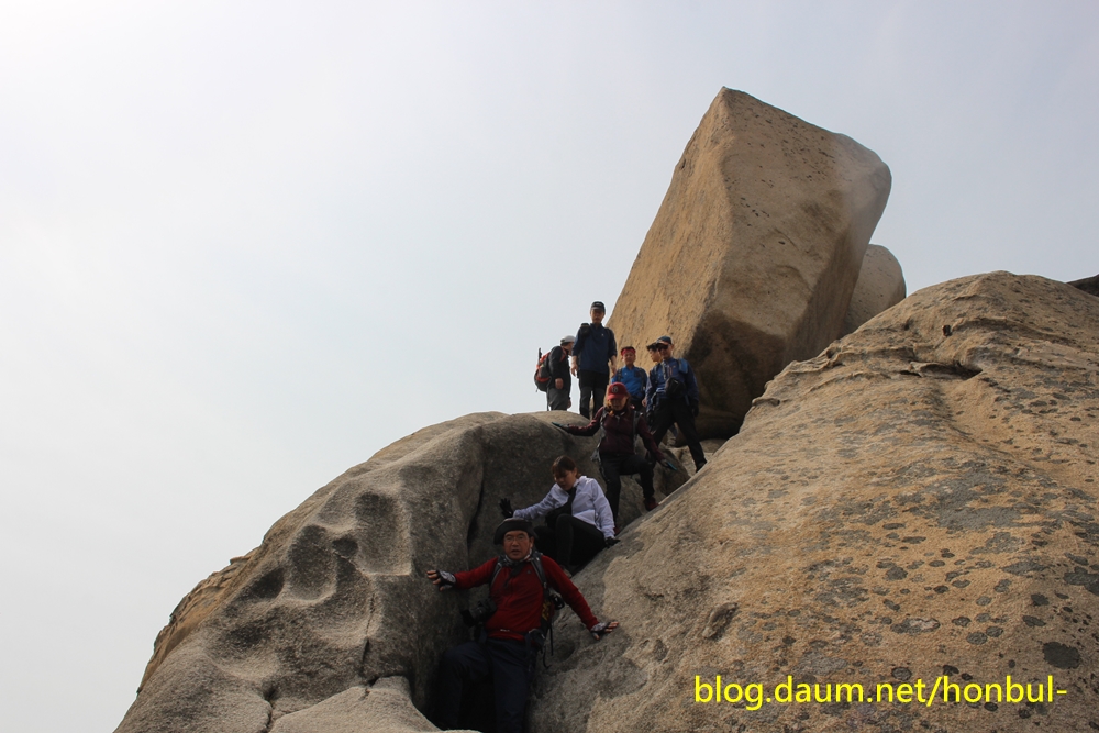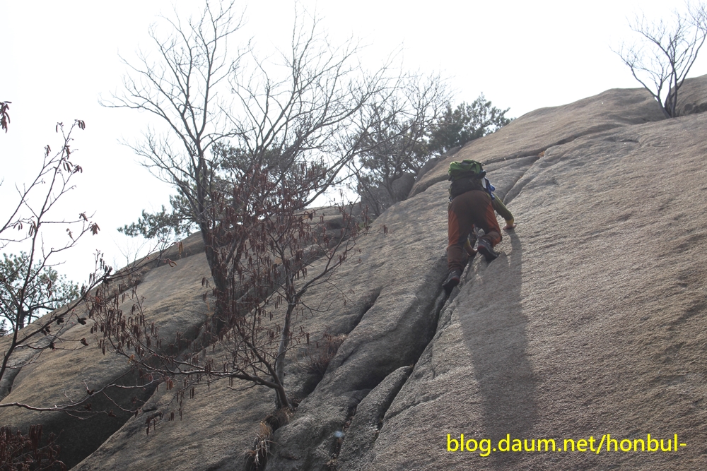 이 바위를 뒤로 넘을 때가 가장 가파른 곳이나 홀더가 좋아 무난히 넘을 수 있다.