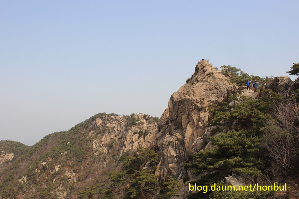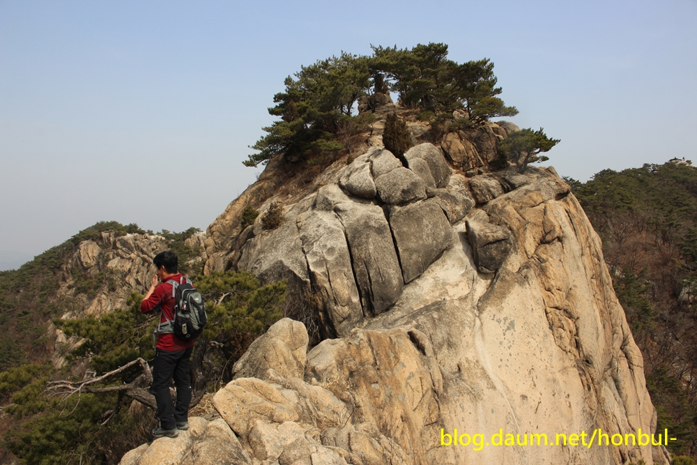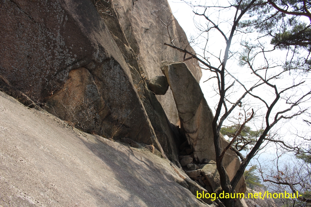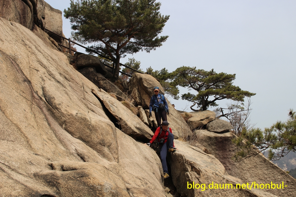 내려올 땐 사진처럼 아래쪽 바위 면으로 내려오는 게 편하다.