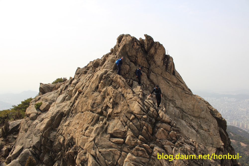 탕춘대성벽 끝 바위에서 보는 향로봉은 그야말로 뾰족한 봉우리다.