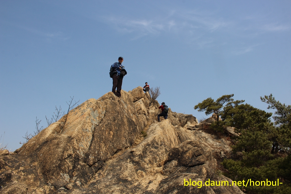 1봉의 바위도 빙산의 일각처럼 보이지 않는 뿌리가 길어 한참을 돈 후에 정규 탐방로와 만났다.