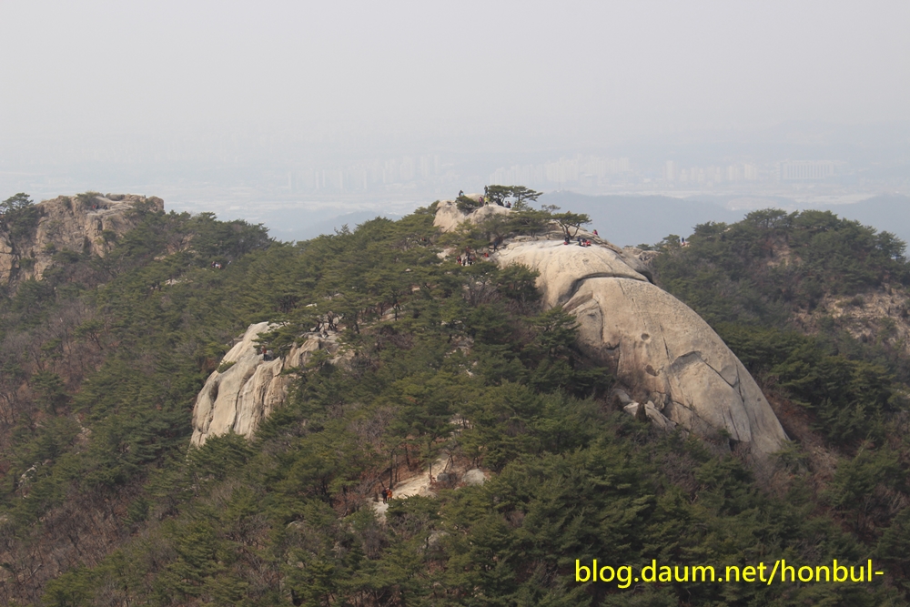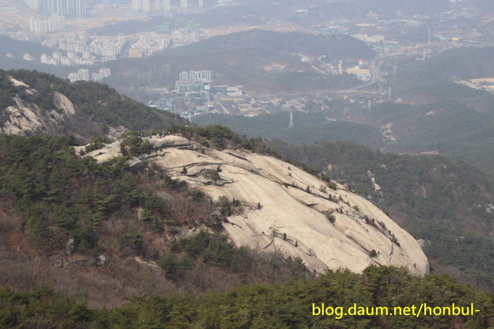 비봉 정상에서 바라본 잉어바위 상단, 잠시 후 내려가게 된다.