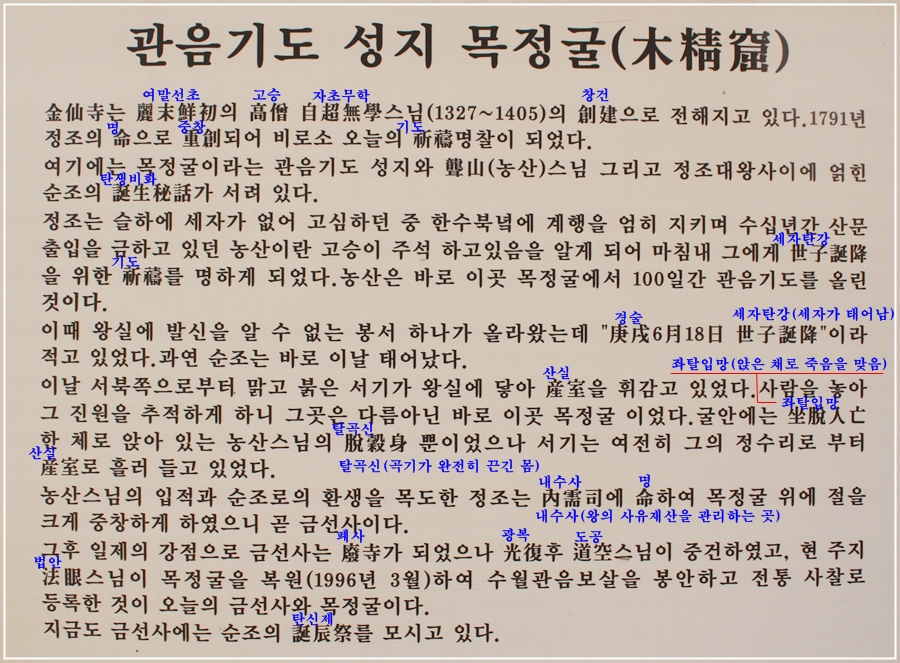 조선시대에는 목정굴이 관음기도 성지로 알려졌다.