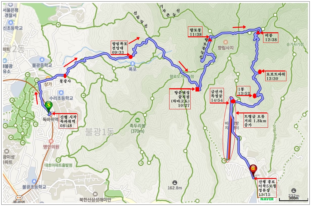 이번 북한산은 수없이 많은 갈래 중 선림 슬랩-차마고도-향로봉-비봉-로봇 바위를 연결할 생각이다.
