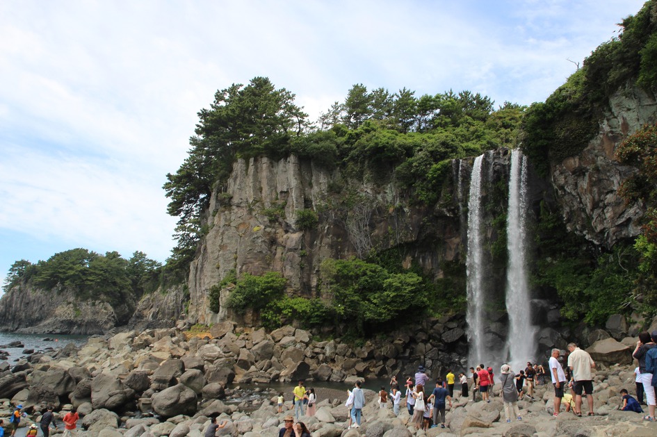 국내에선 유일한 뭍에서 바다로 직접 떨어지는 폭포다. 서귀포 시내에서 버스로 15분 거리에 있다.