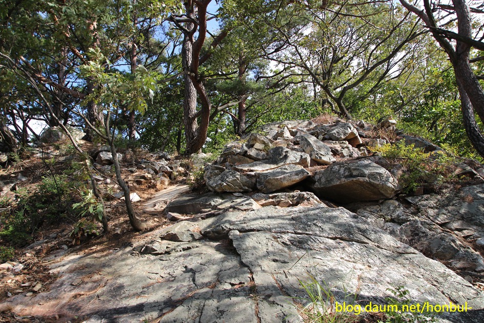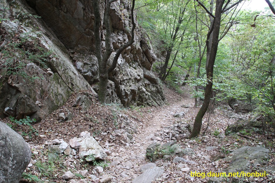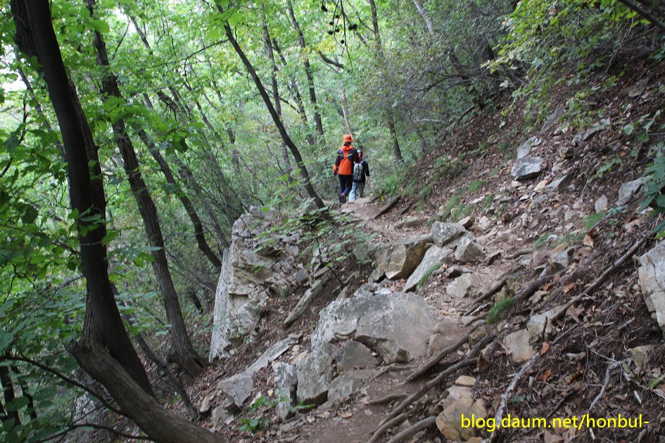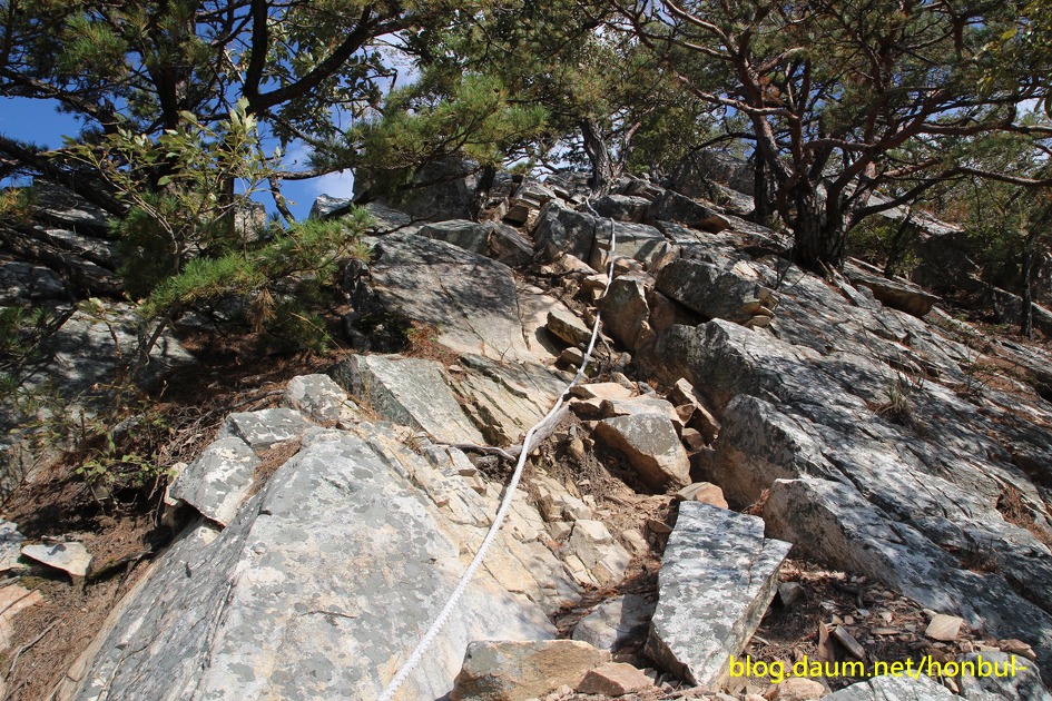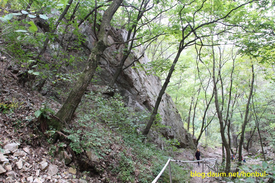 제법 가파른 바위길을 올려다 보며 찍은 사진이라 경사도가 보이지 않는다.