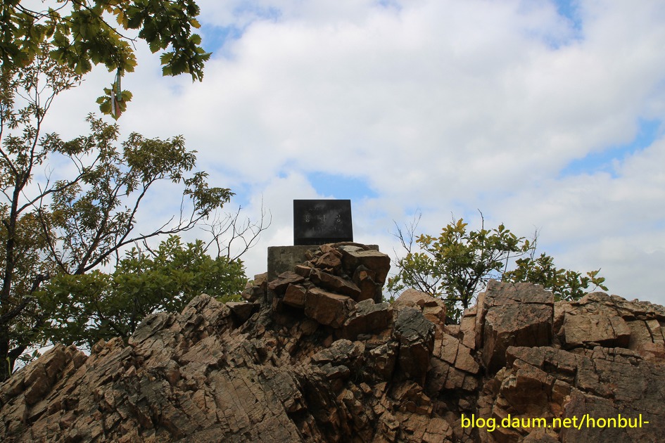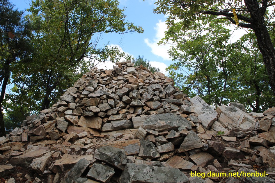 제대로 대접을 못 받아 평볌한 돌무더기에 바위 귀퉁이에 매직으로 쓴 글자가 표지석을 대신한다.