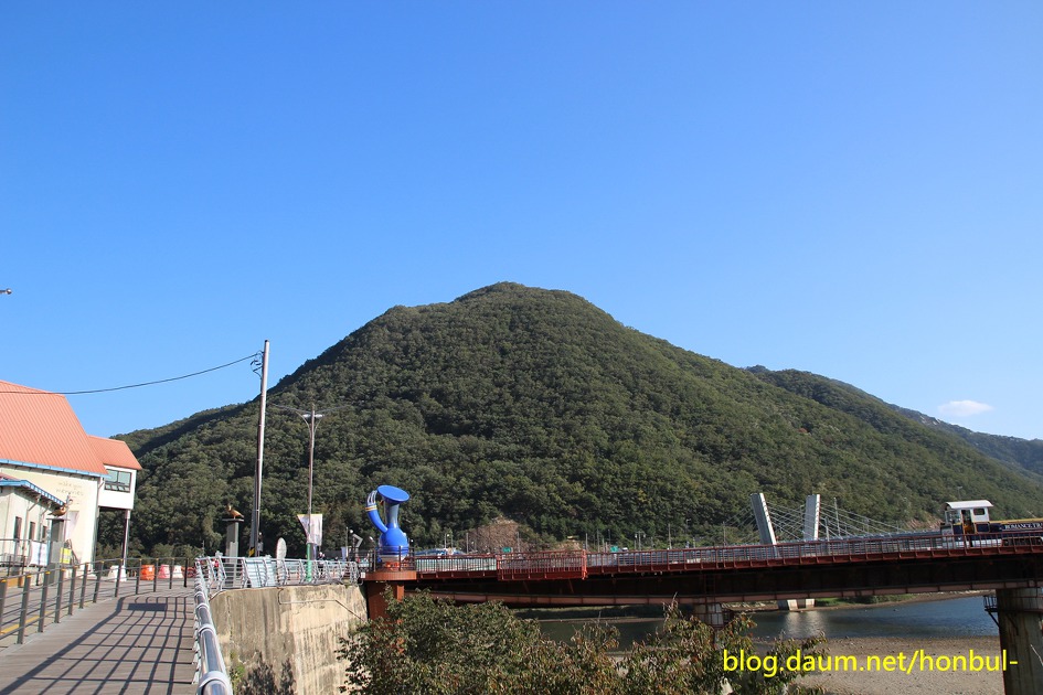 다리를 건너 바로 보이는 저 삼악산을 치고 올라야 한다.