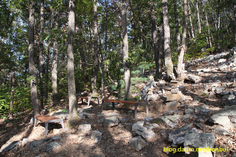 처음 오를 땐 입구가 맞나 싶을 정도로 홀대받는 들머리지만, 중간에 이런 쉼터도 있다.