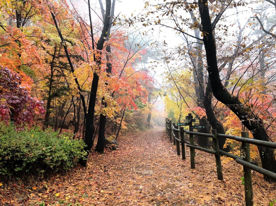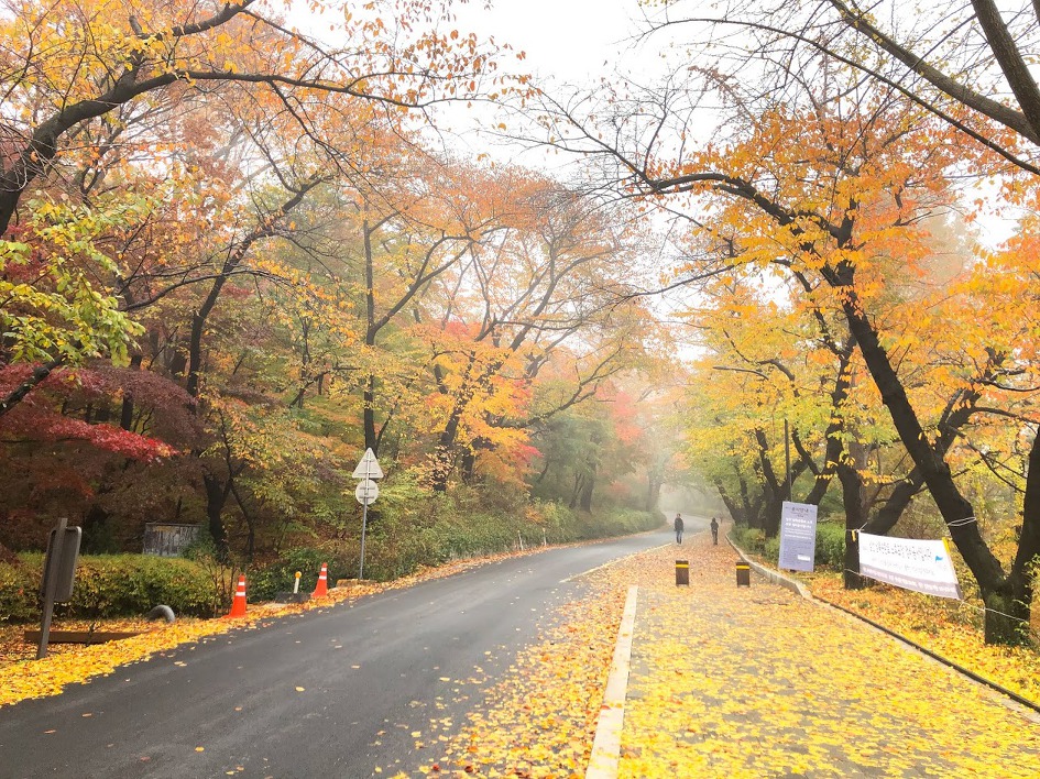 여긴 노란 단풍이 흙을 덮어 기막힌 풍경이 연출된다.