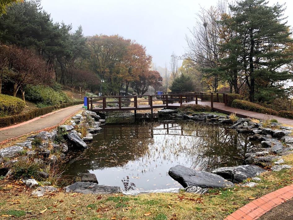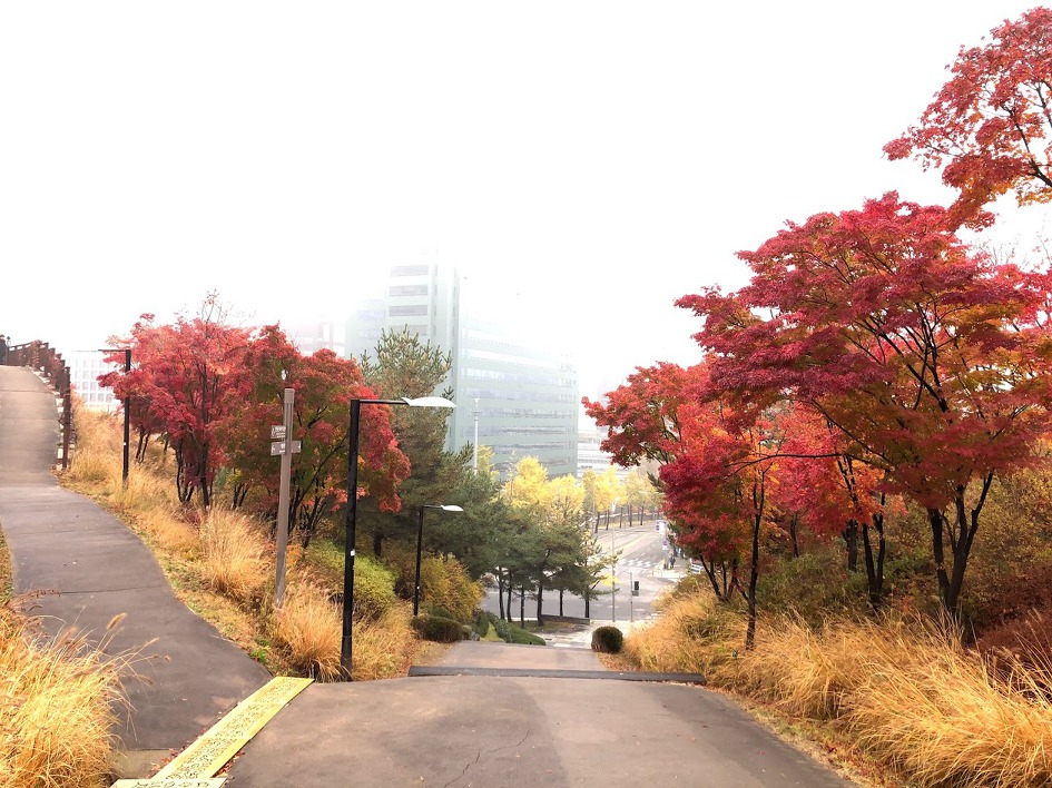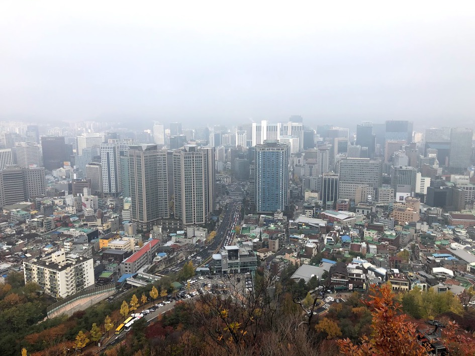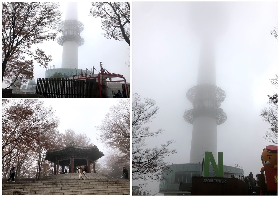 신한은행 본점에서 하차하여 약 600m를 걸어 남산에 도착했을 땐 안개로 시야가 너무 좁다.