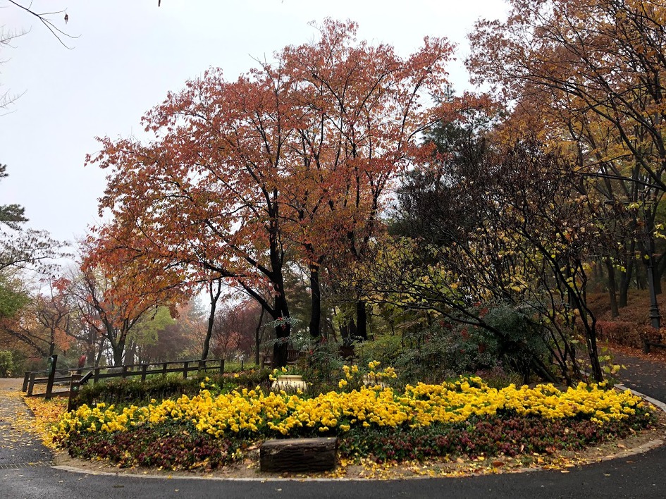 8일 전에 입동이라 이젠 겨울인 줄 알았더니 다 물러간 가을이 남산에 남아 있다.