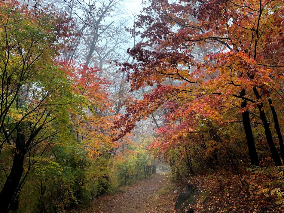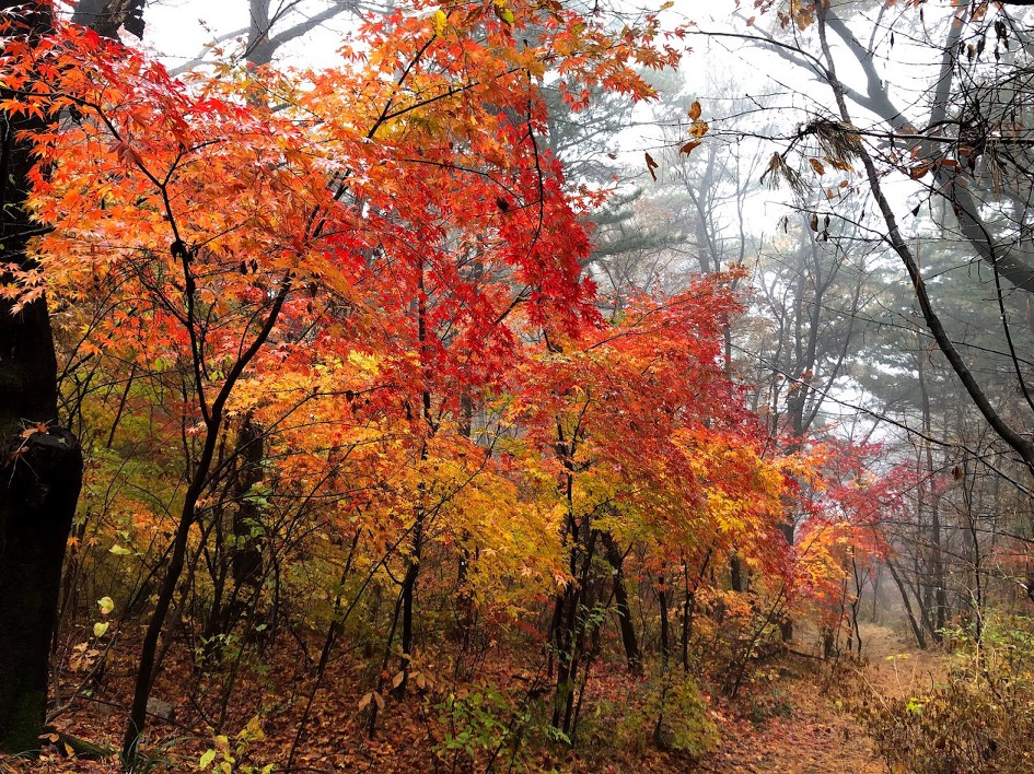 이젠 최남단이나 제주에서나 볼 수 있는 단풍이 아직 버티고 있는 게 보이니 안개 속에서도 가을 정취를 느낀다.