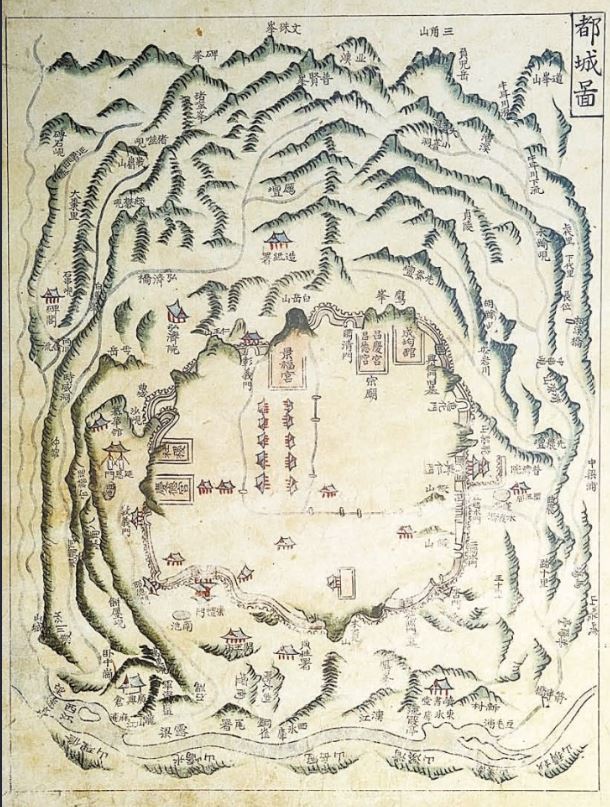 한양은 백악-남산-인왕산의 내사산으로 둘러싸여 있고, 이 사산의 능선 다라 도성을 축성했다.