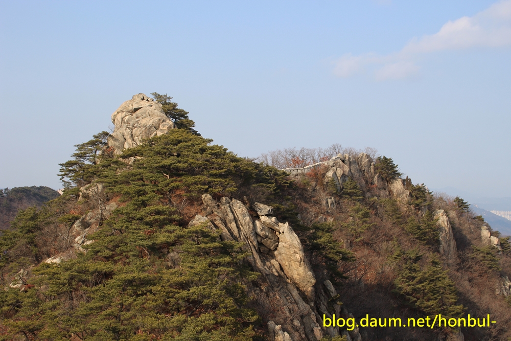 두 군데서 시도하다 안 돼 대남문으로 내려가 문수봉으로 오르며 찍은 비룡봉이다.