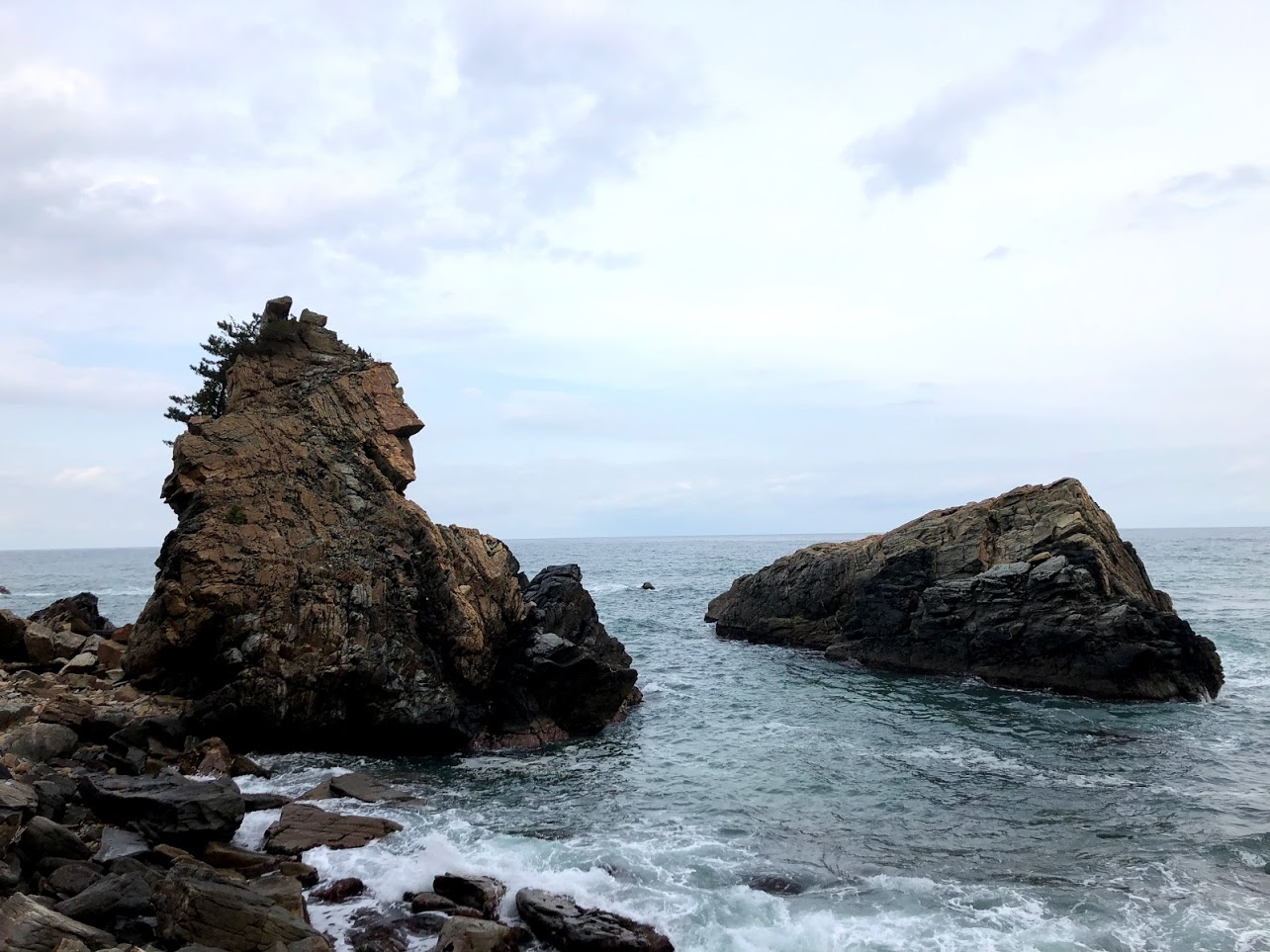 멋진 바위가 더 눈에 띄는 두에기해수욕장