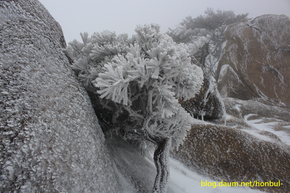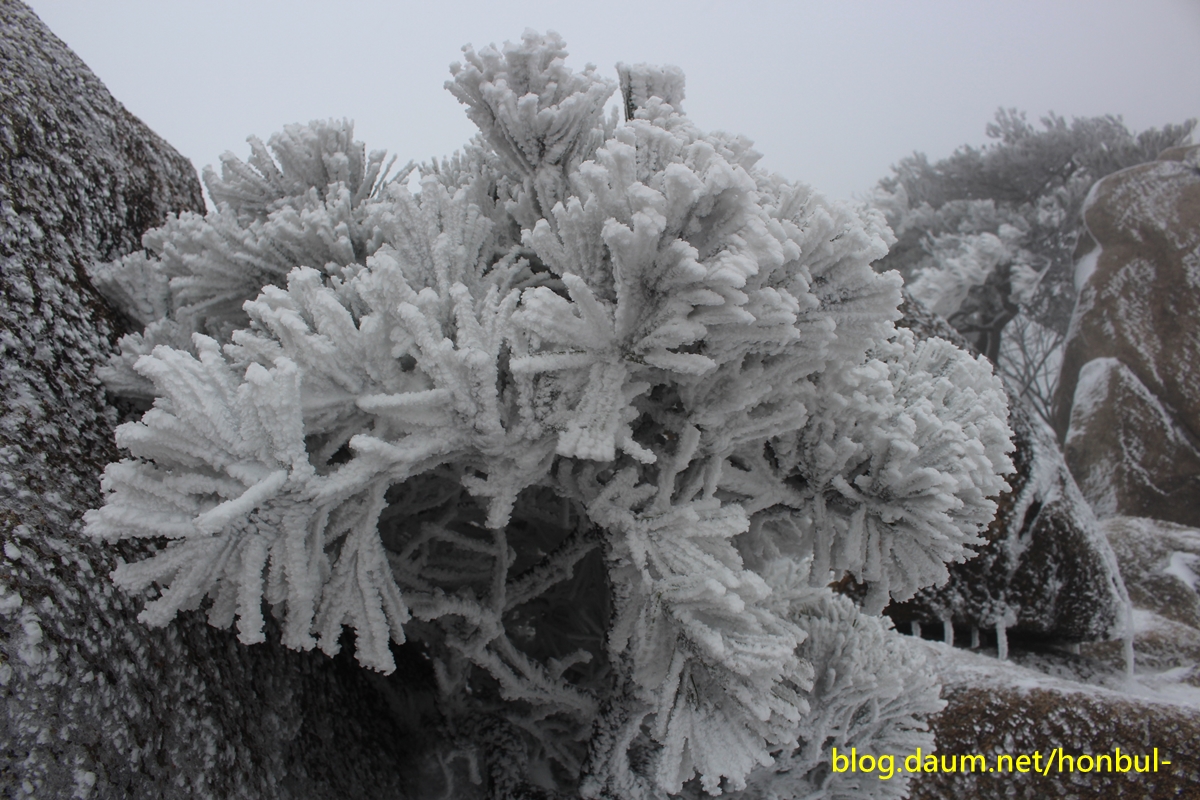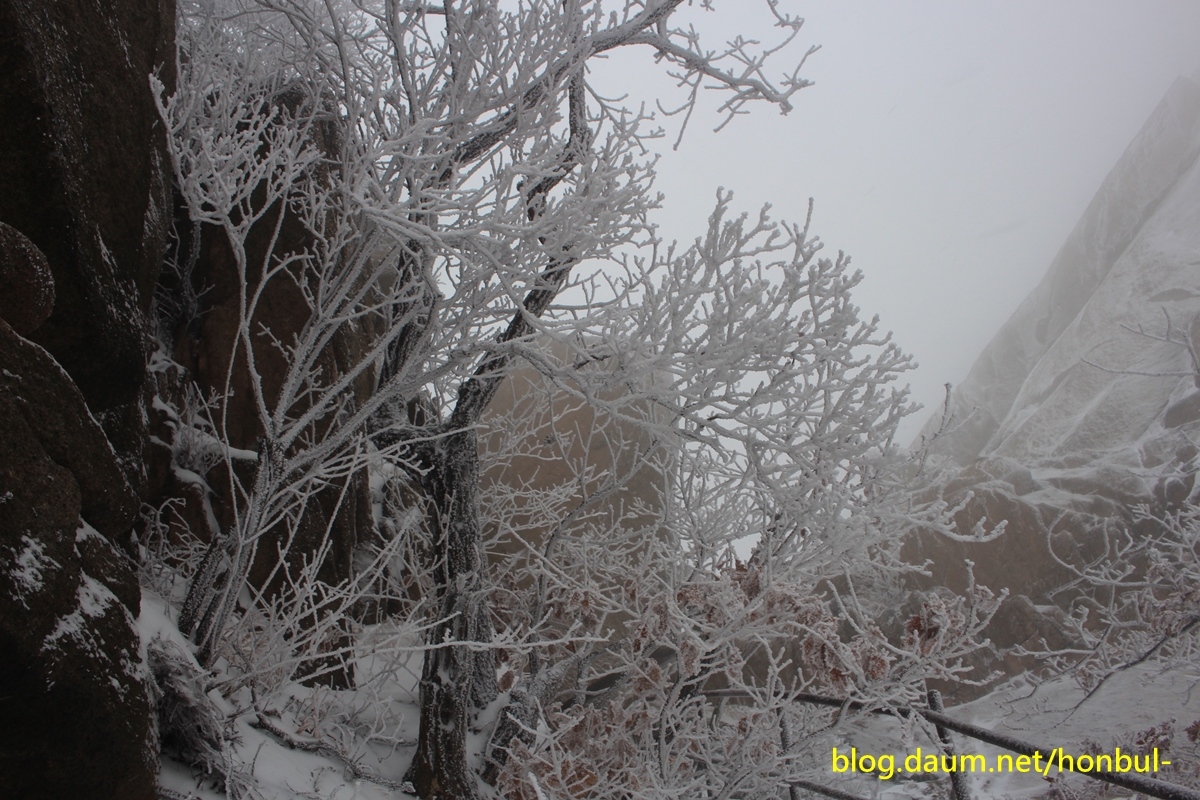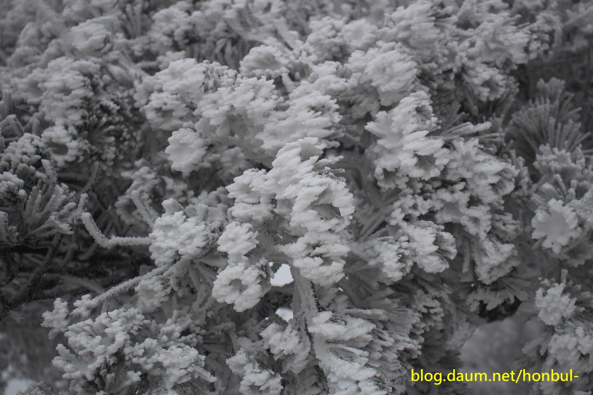 지상의 겨울비는 산상에선 눈꽃과 상고대로 변해 산행이 아니고선 보기 힘든 겨울꽃을 피워냈다.