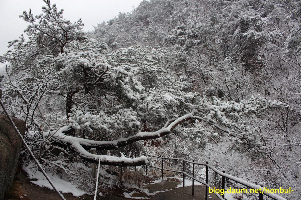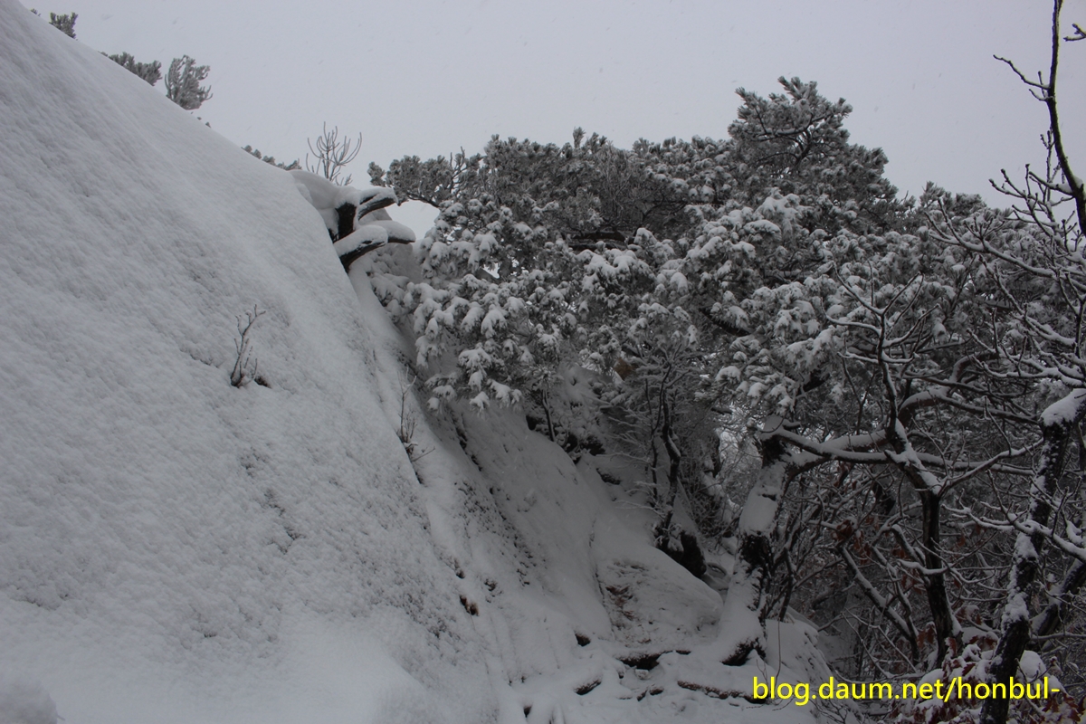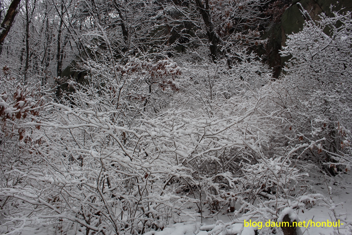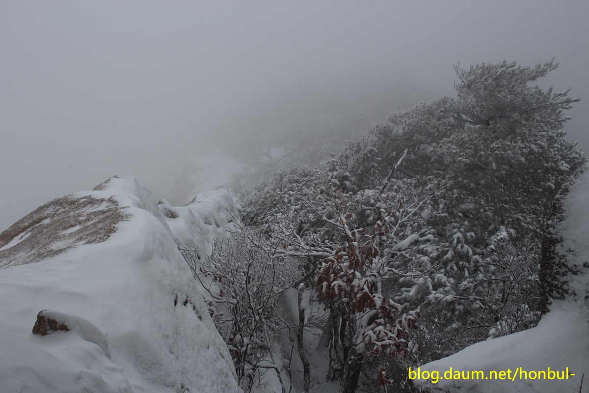 어제 오후부터 내린다는 비는 산에서는 분명 눈으로 변했겠다.