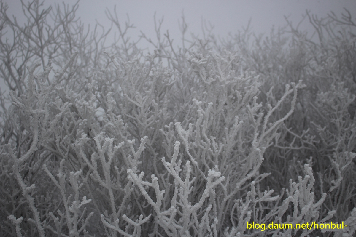 키 작은 나뭇가지에도 상고대가 펴 산호 같은 느낌이 물씬 묻어난다.