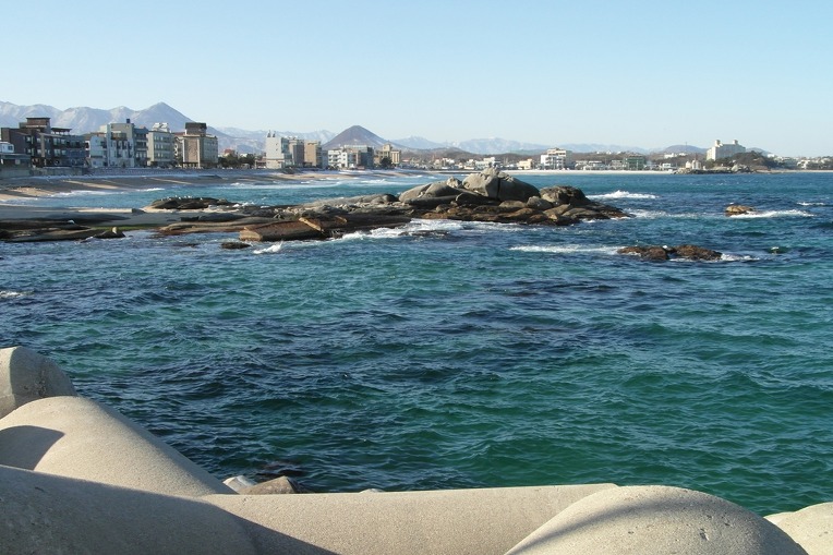 ▼ 가운데 큰바위에 원효가 도를 닦았다는 금강굴이 보인다