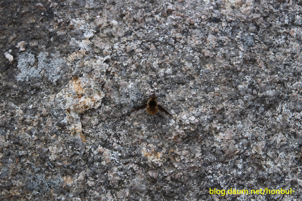 9봉 오르는 홈통 입구에 꿀을 빠는 꿀 대롱을 가진 작은 벌 한 마리가 꼼짝하지 않는다.
