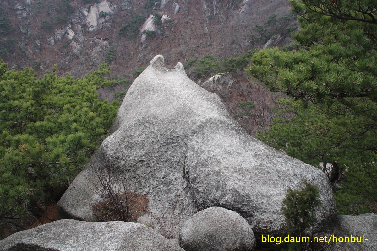 열심히 아주 열씨미 전력을 다해 바위를 탄 덕에 바로 이 생쥐 머리처럼 생긴 바위 옆으로 올라왔다.