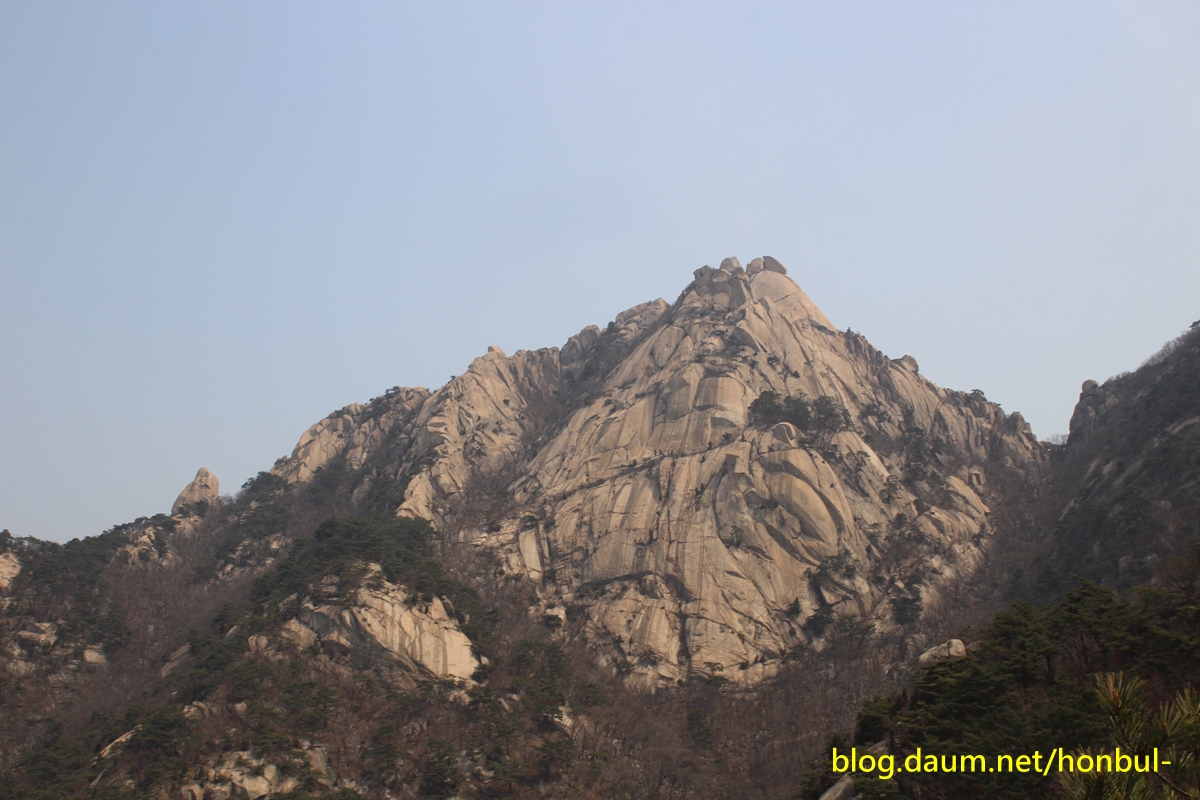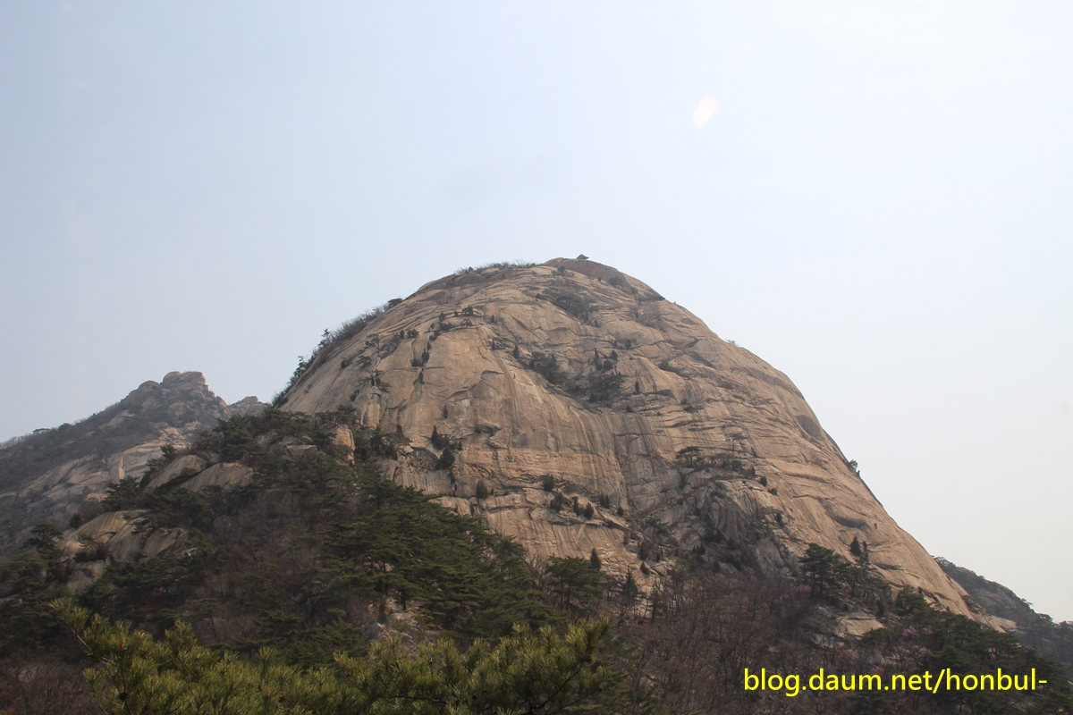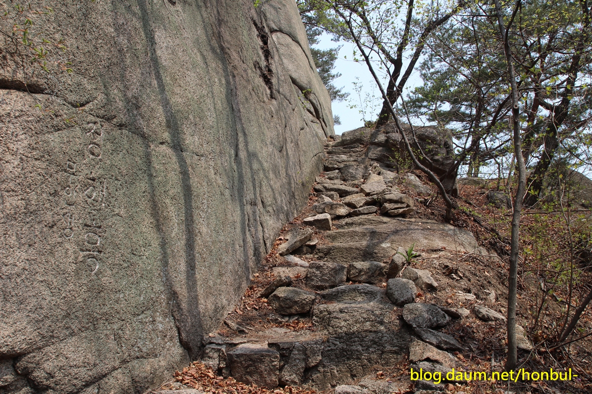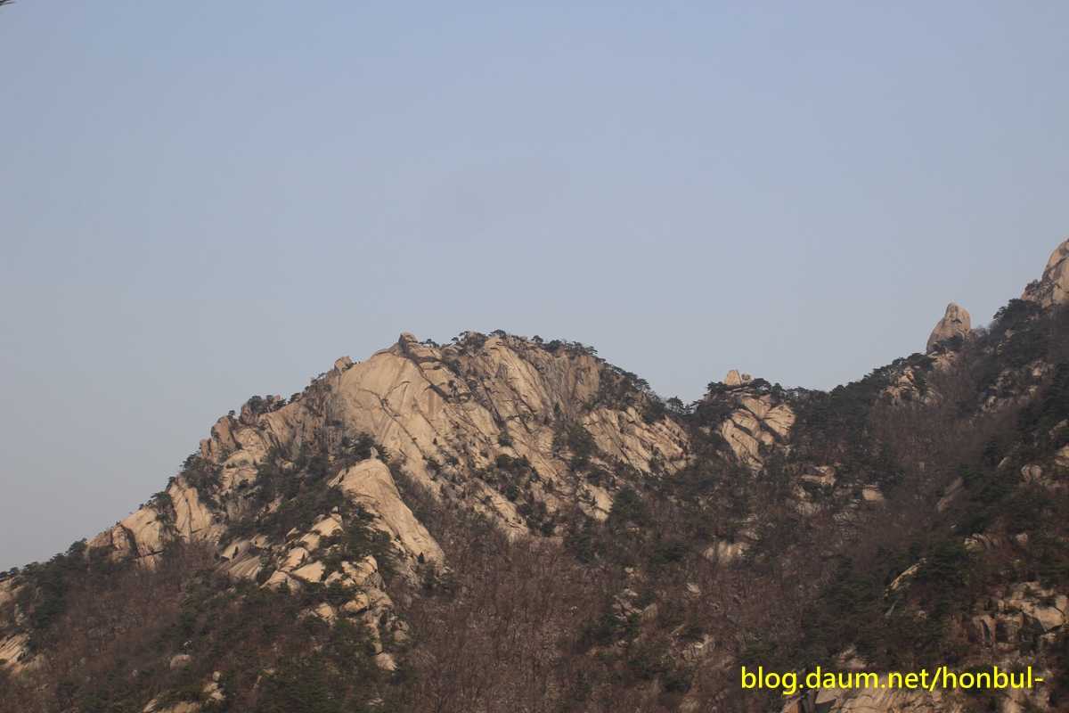 암벽을 배우지 않아 북문에서 바로 올라가는 바위를 탈 수 없기에 한참을 돌아 오른다.