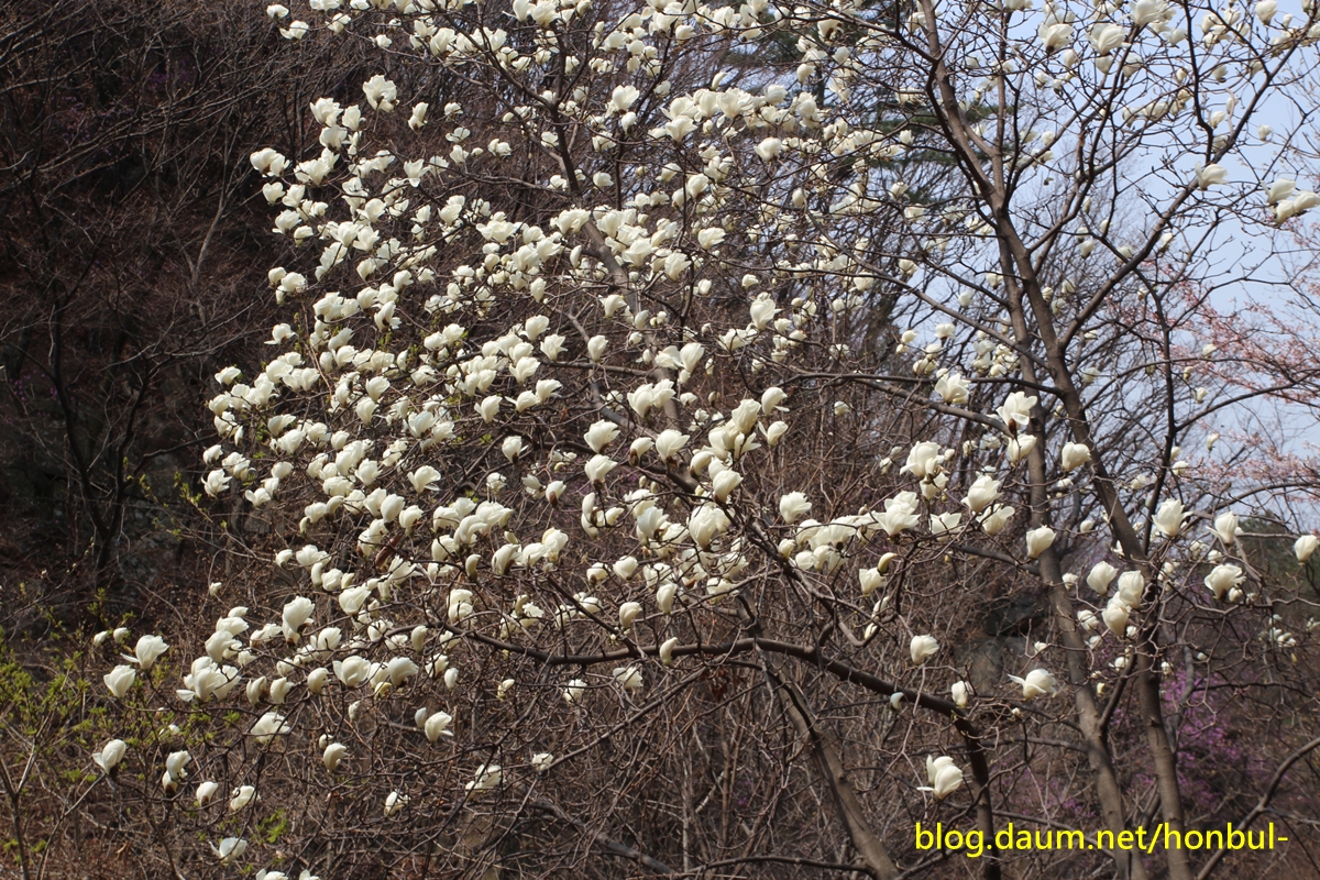 부황사암문으로 가기 위해 올라가는 길에 흐드러지게 핀 목련을 본다.