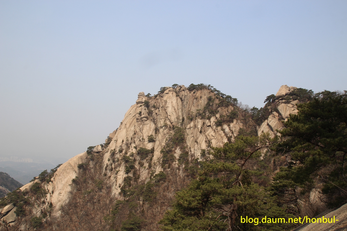 바로 북문에서 암벽을 타고 오르든 즐풍처럼 지능선을 따라 우회하든 불구하고