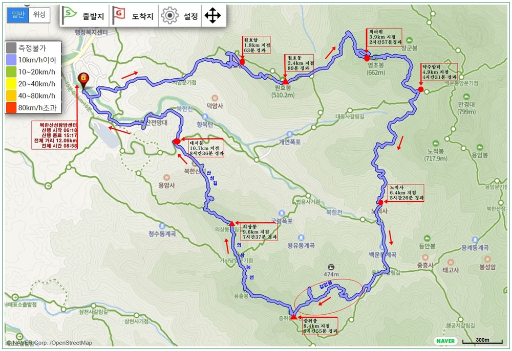 06:18~15:17 (전체 시간 8시간 58분, 휴식 1시간 50분, 전체 거리 12.06km, 평속 1.6km/h) 미세먼지 많음