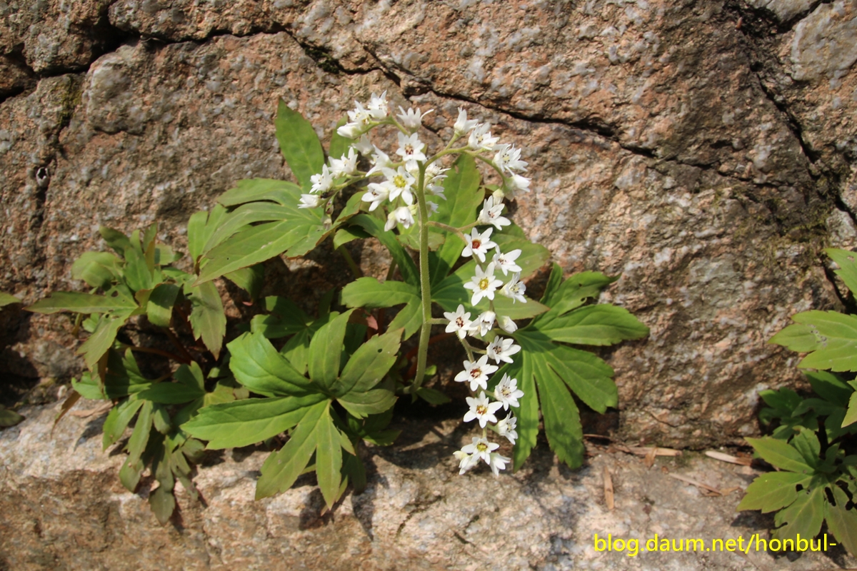 개울을 건너며 본 돌단풍 꽃