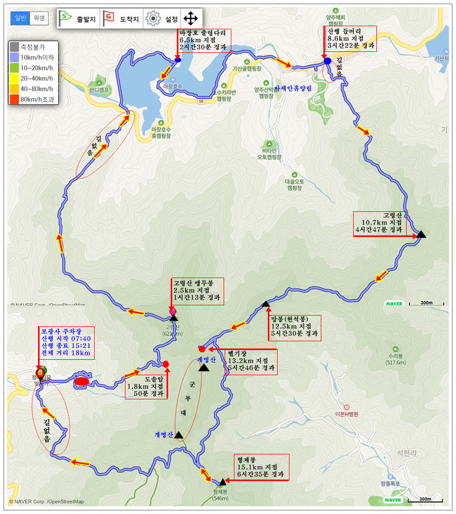 보광사-고령산-마장호수 출렁다리-계명산-형제봉-개명산-환종주 코스