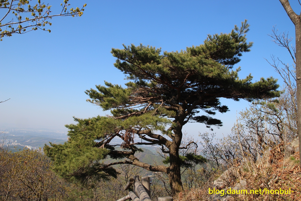 정상 밟고 보광사로 하산하는 길은 지났으나 계속 마장호수 방향으로 가며 만난 소나무다.