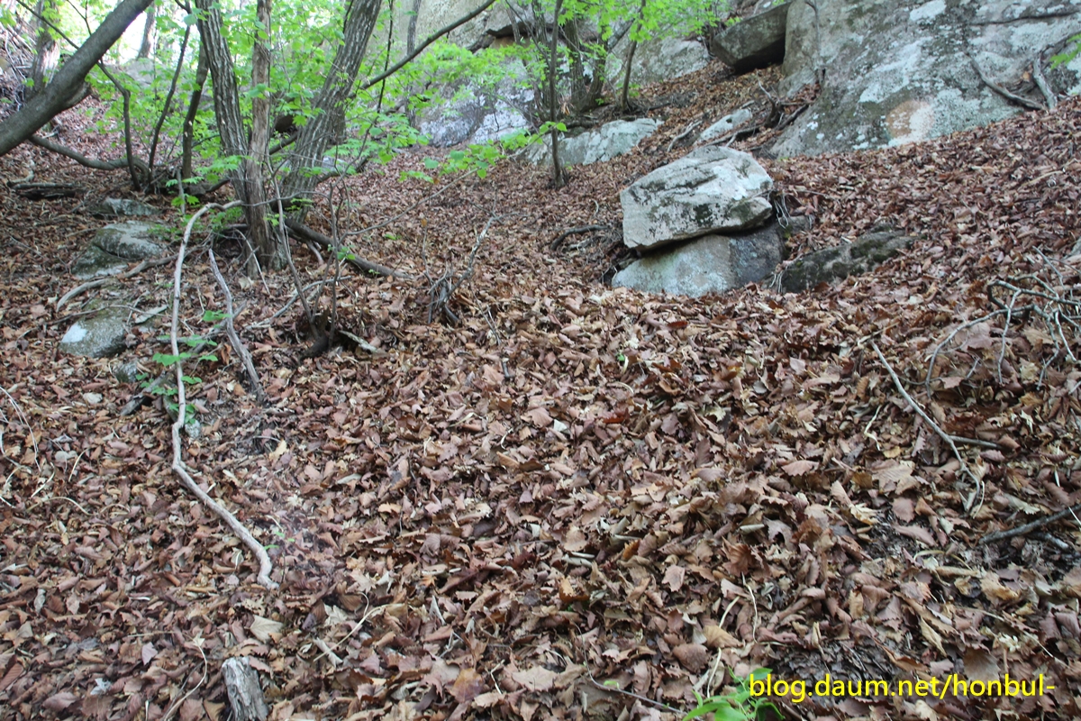 이 바위를 지나 밑으로 내려갈수록 길이 점점 희미해져 찾았다 놓치기도 한다.