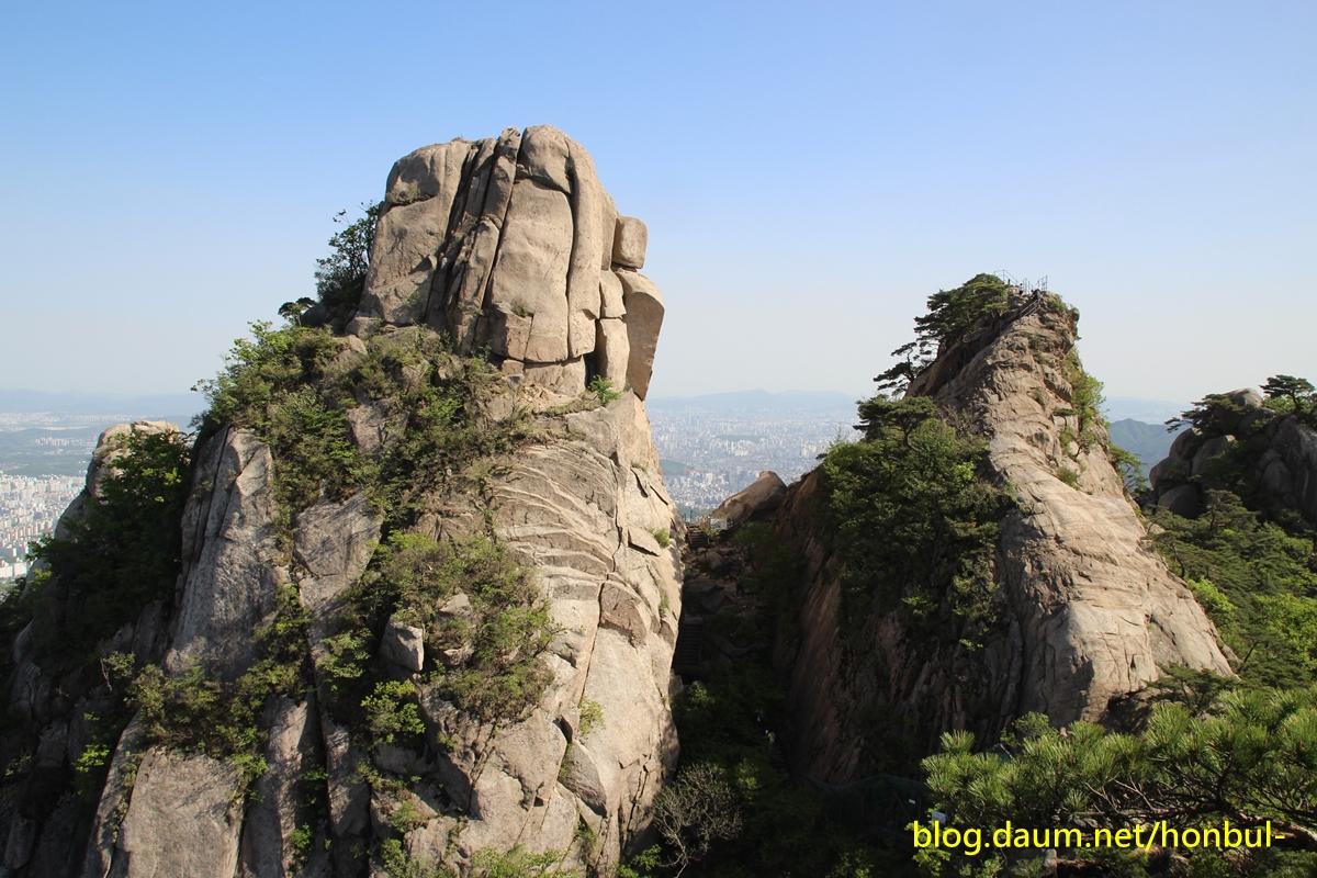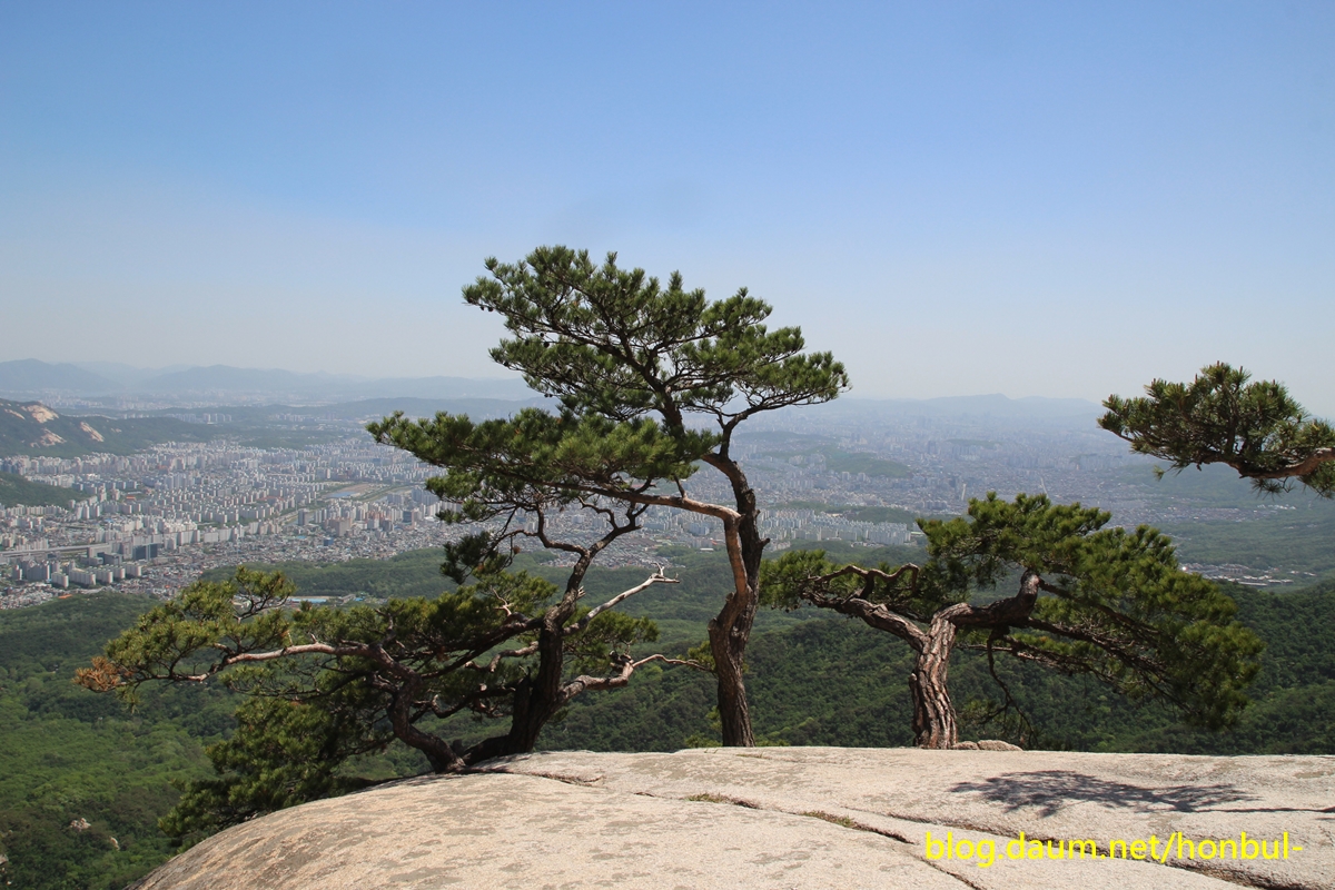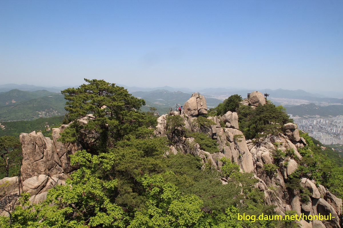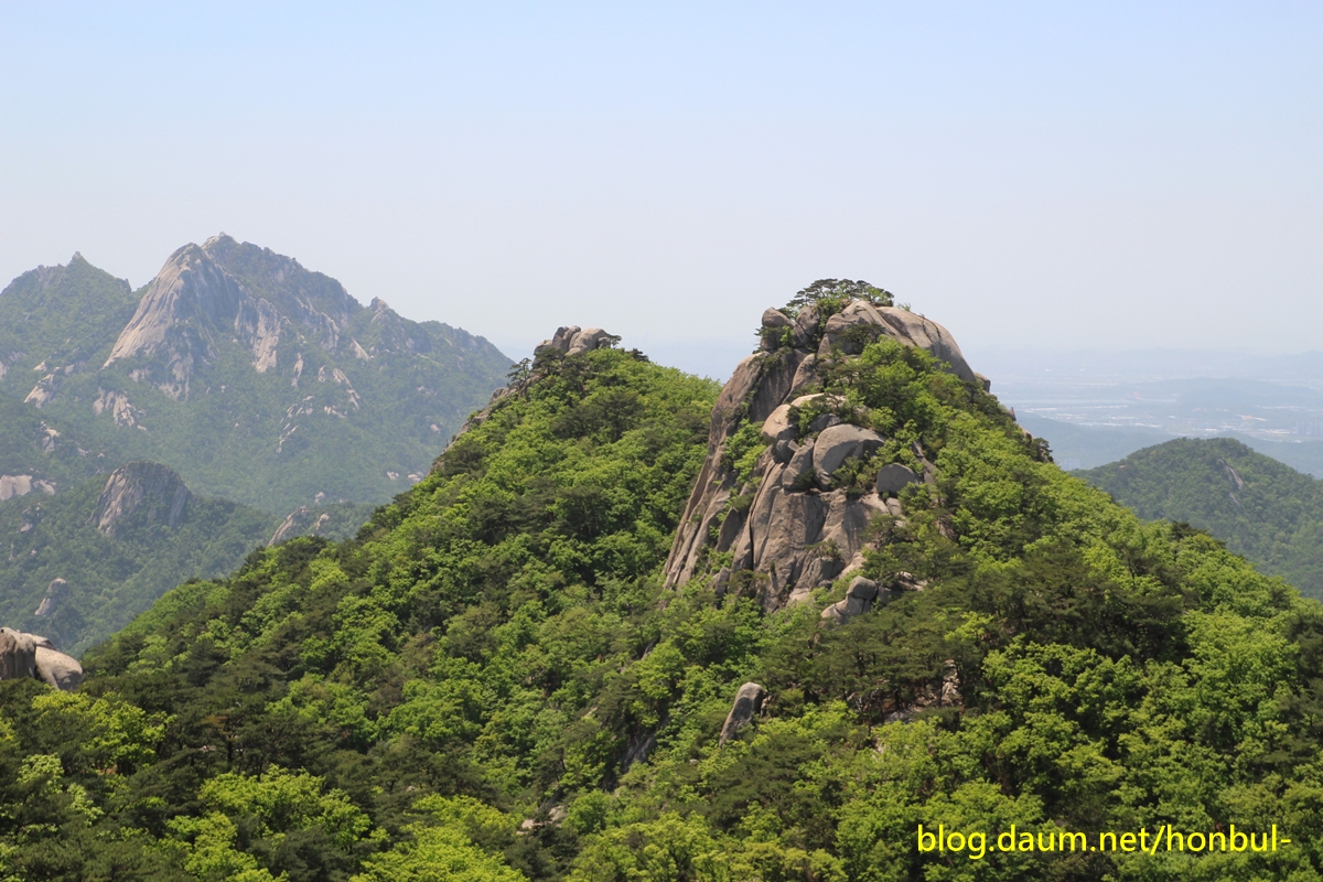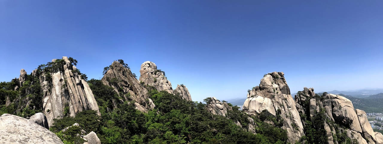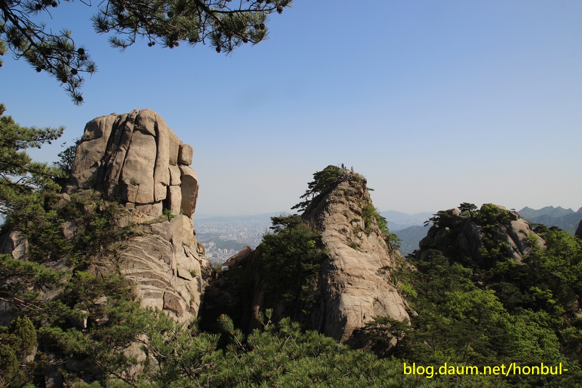 많은 나무로 시야가 가려 건너편 만장봉과 선인봉을 카메라에 담을 수 없다.