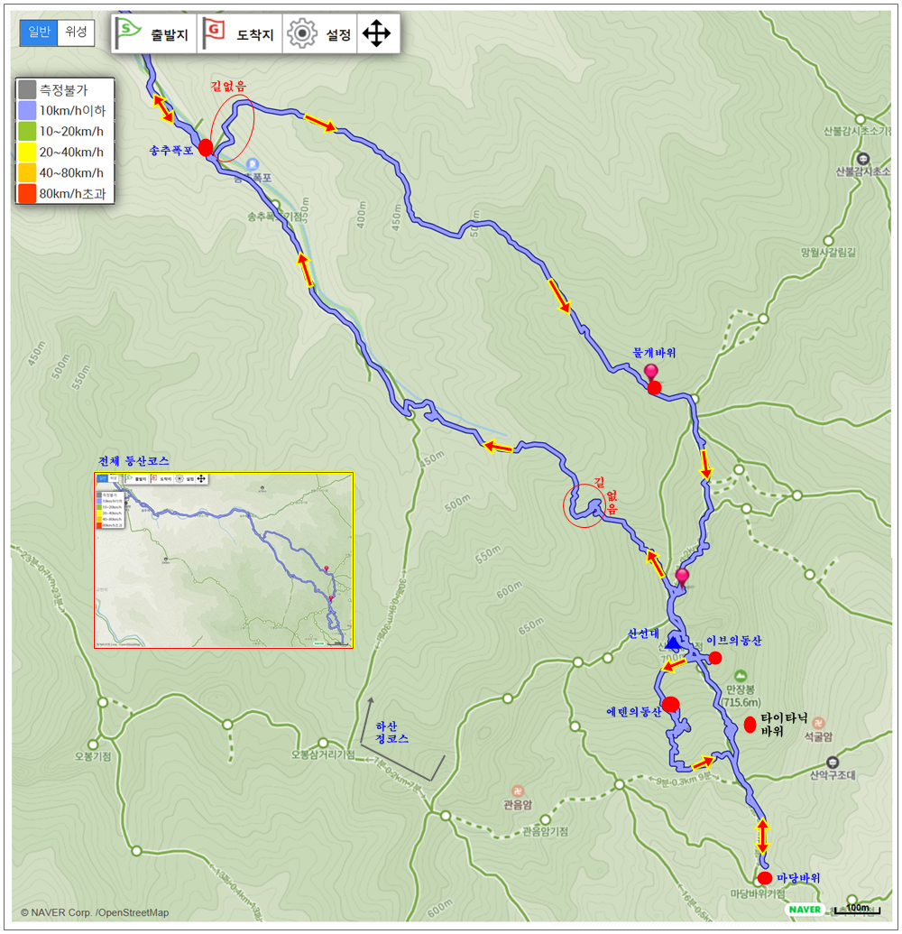 거의 직선으로 오르며 시간과 거리를 줄인 셈이다.