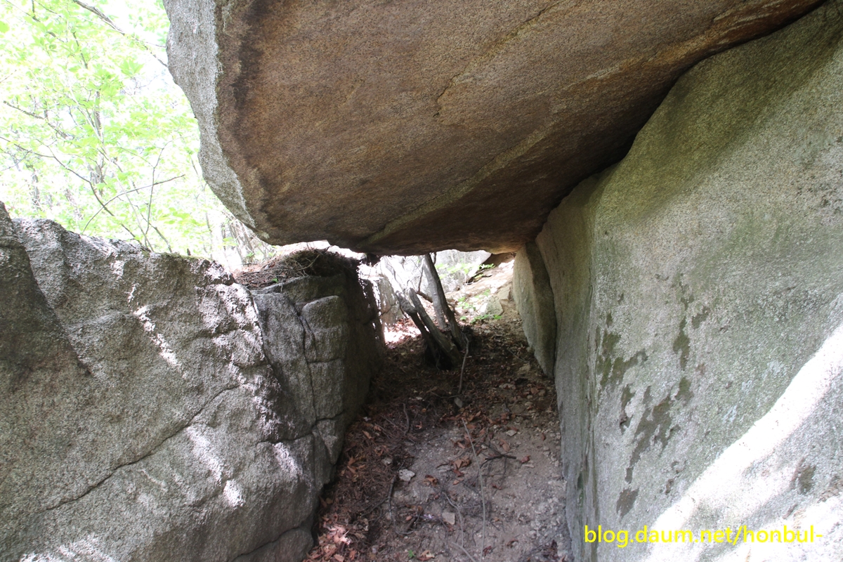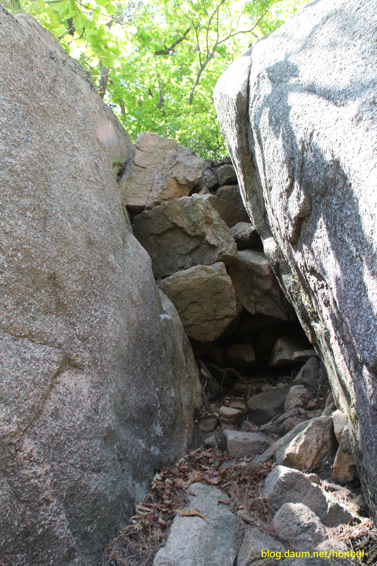 이 바위틈은 계단형으로 쌓인 돌은 약 4미터 정도로 별로 어렵지 않다.