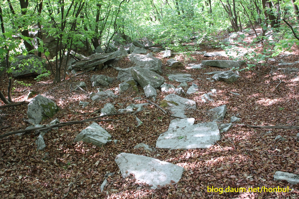 이런 너덜 구간을 지나 나무숲을 뚫기도 하다 몇 사람 지나간 흔적을 겨우 찾는다.