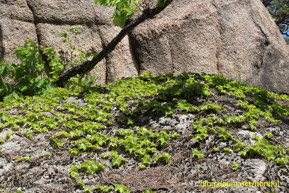 그 커다란 바위 옆 이 담쟁이 풀을 지나 돌아가 보지만,