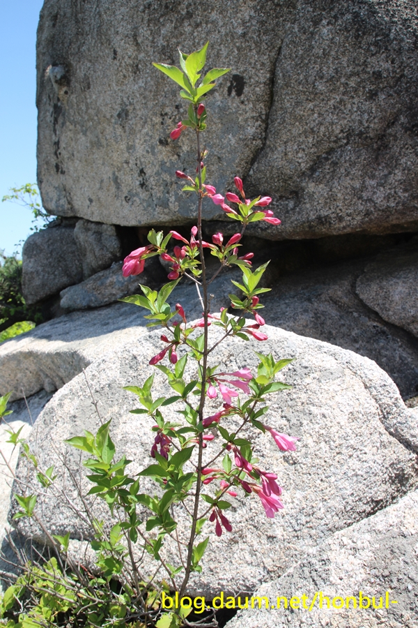 물개바위와 닿은 바위 군락 속에서 자란 병꽃