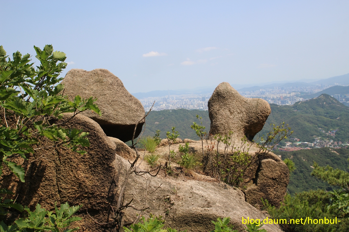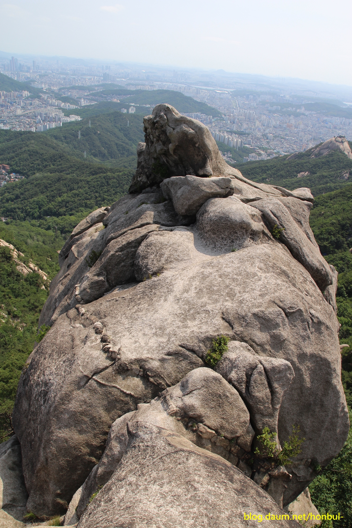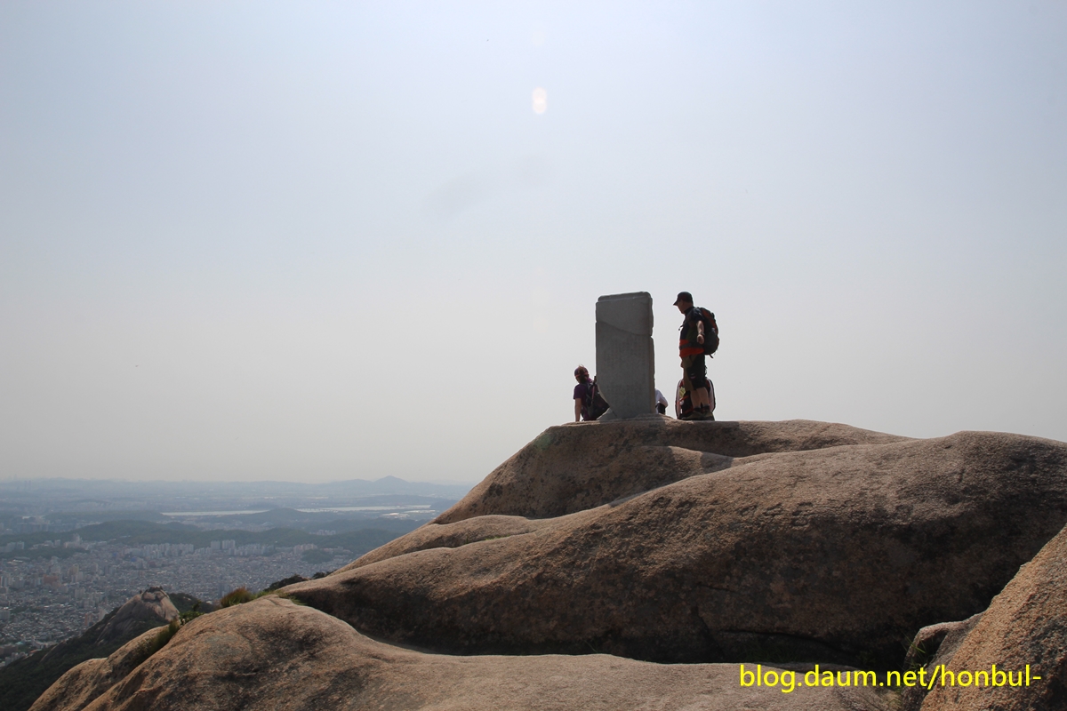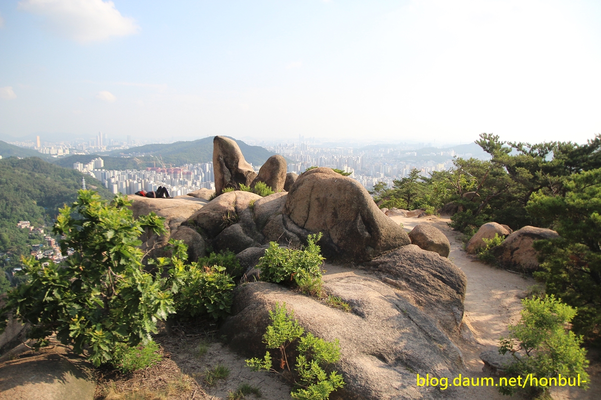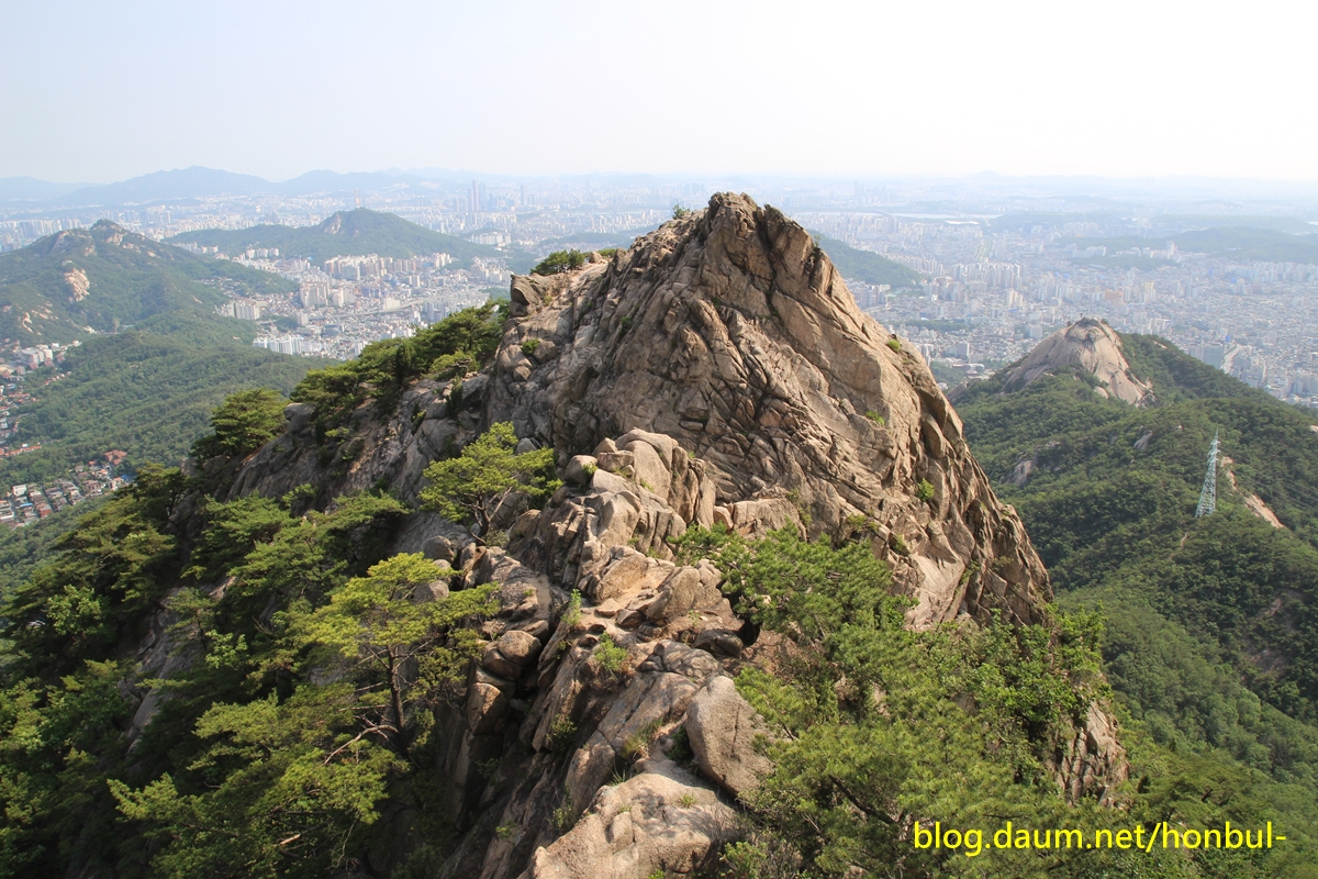앞쪽으로 파도처럼 물결치는 능선은 왼쪽 봉우리부터 북악산-인왕산-안산이고,