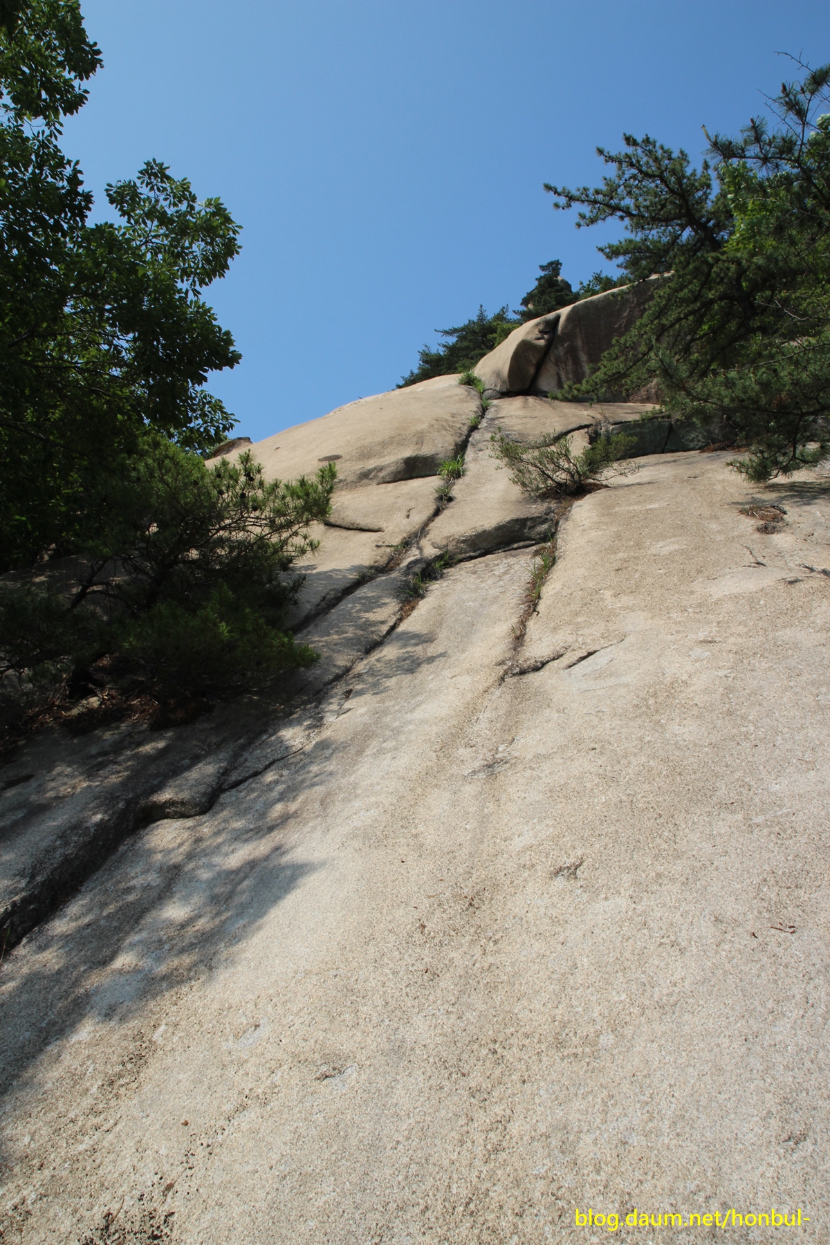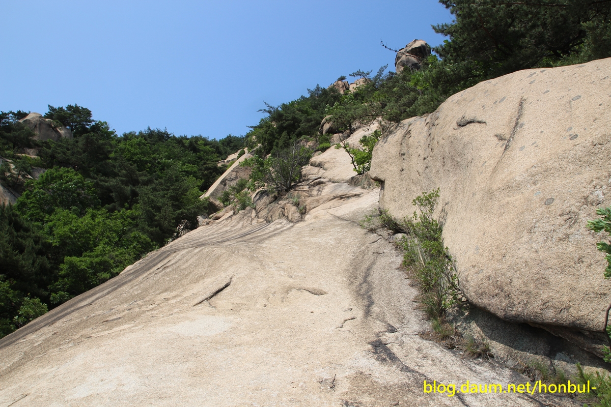 북한산 슬랩 중에서 이 잉어슬랩이 가장 길고 경사가 높은 슬랩이다.