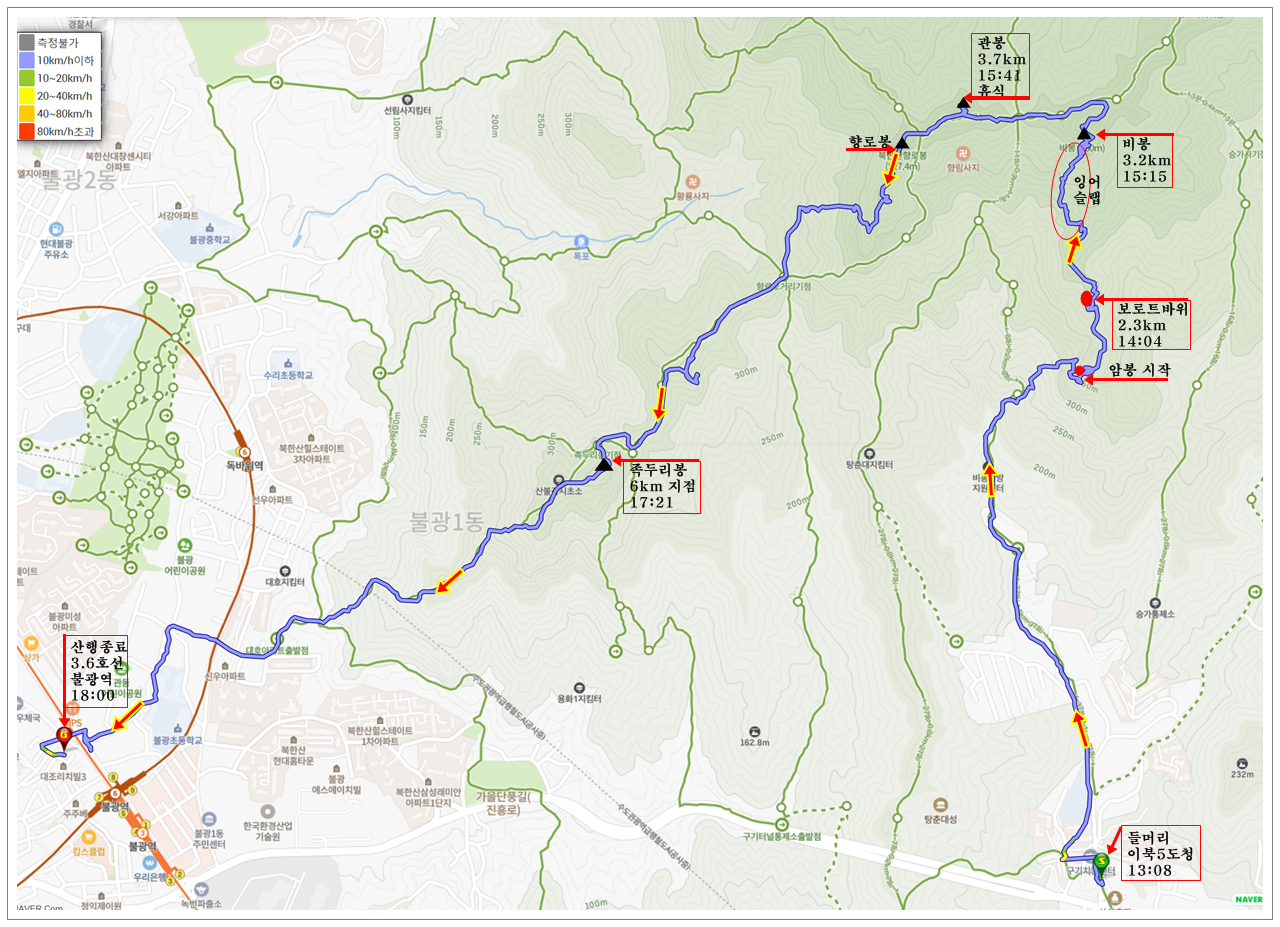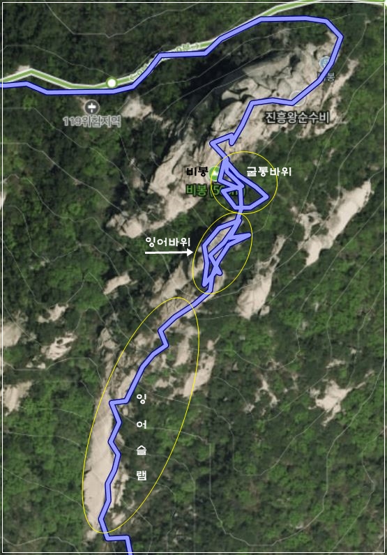 북한산 로봇바위-잉어슬랩-잉어 바위-비봉-관봉-향로봉-족두리봉 산행코스