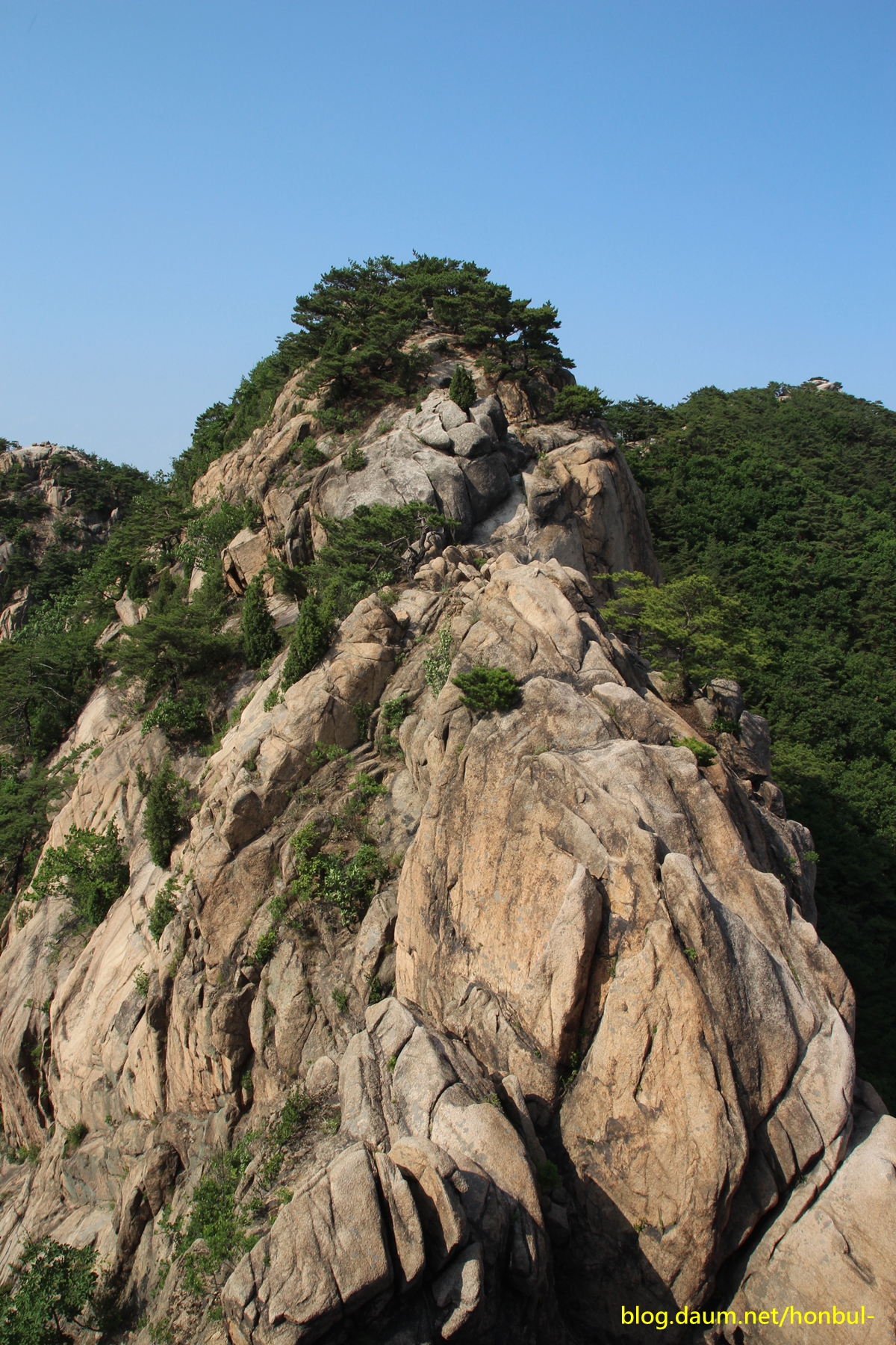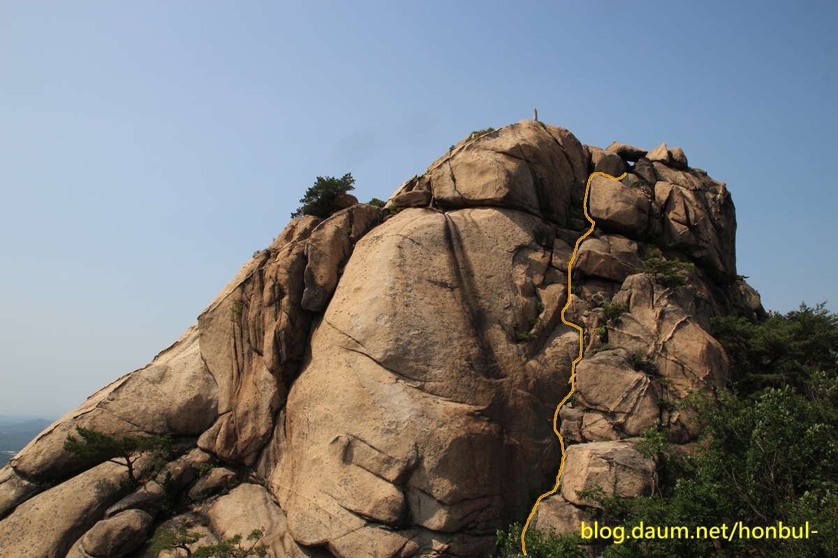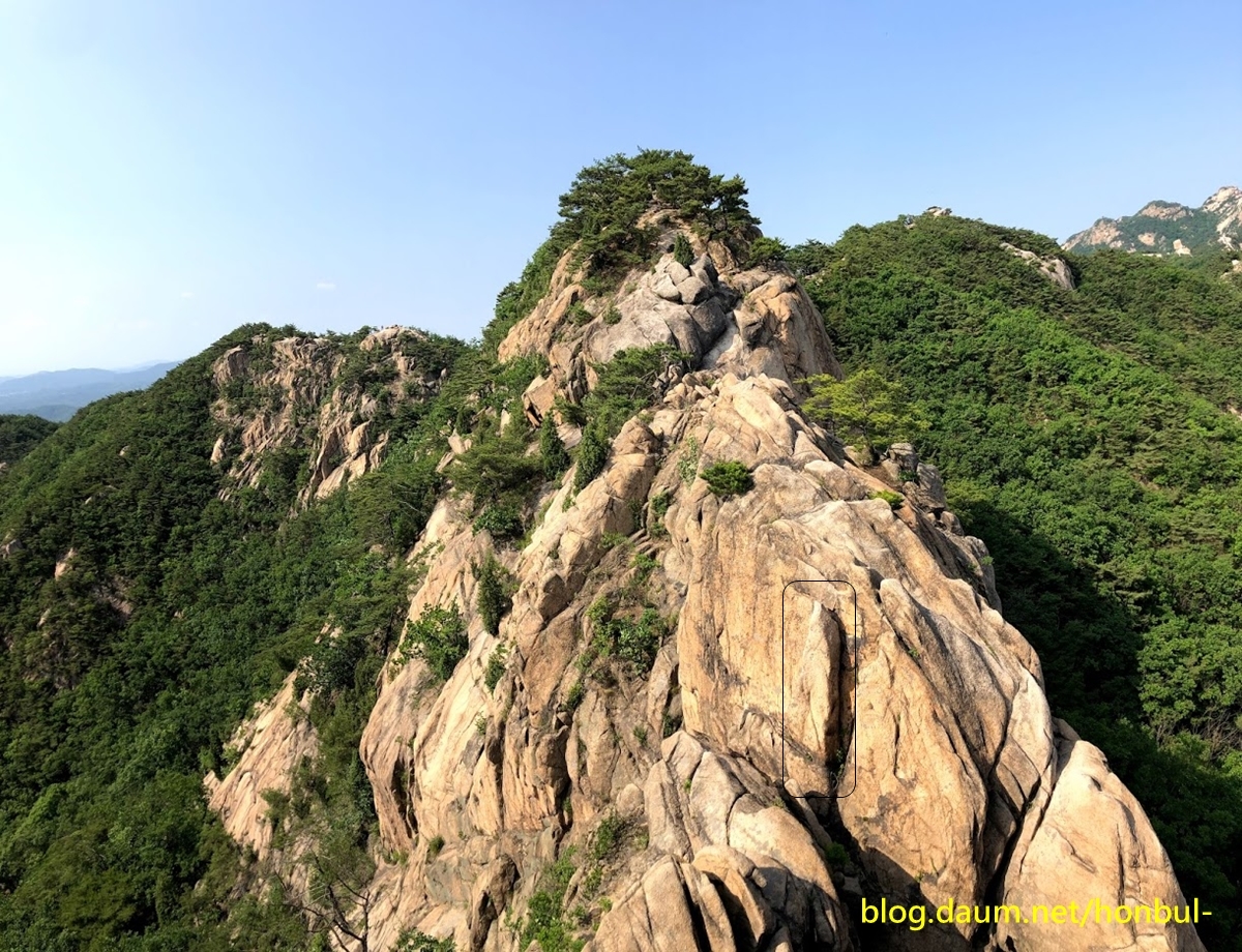 계단을 타고 올라오긴 했어도 중간에 길이 끊겨 마지막 구간은 릿지를 해야 하니 이용하지 않는 게 좋다.